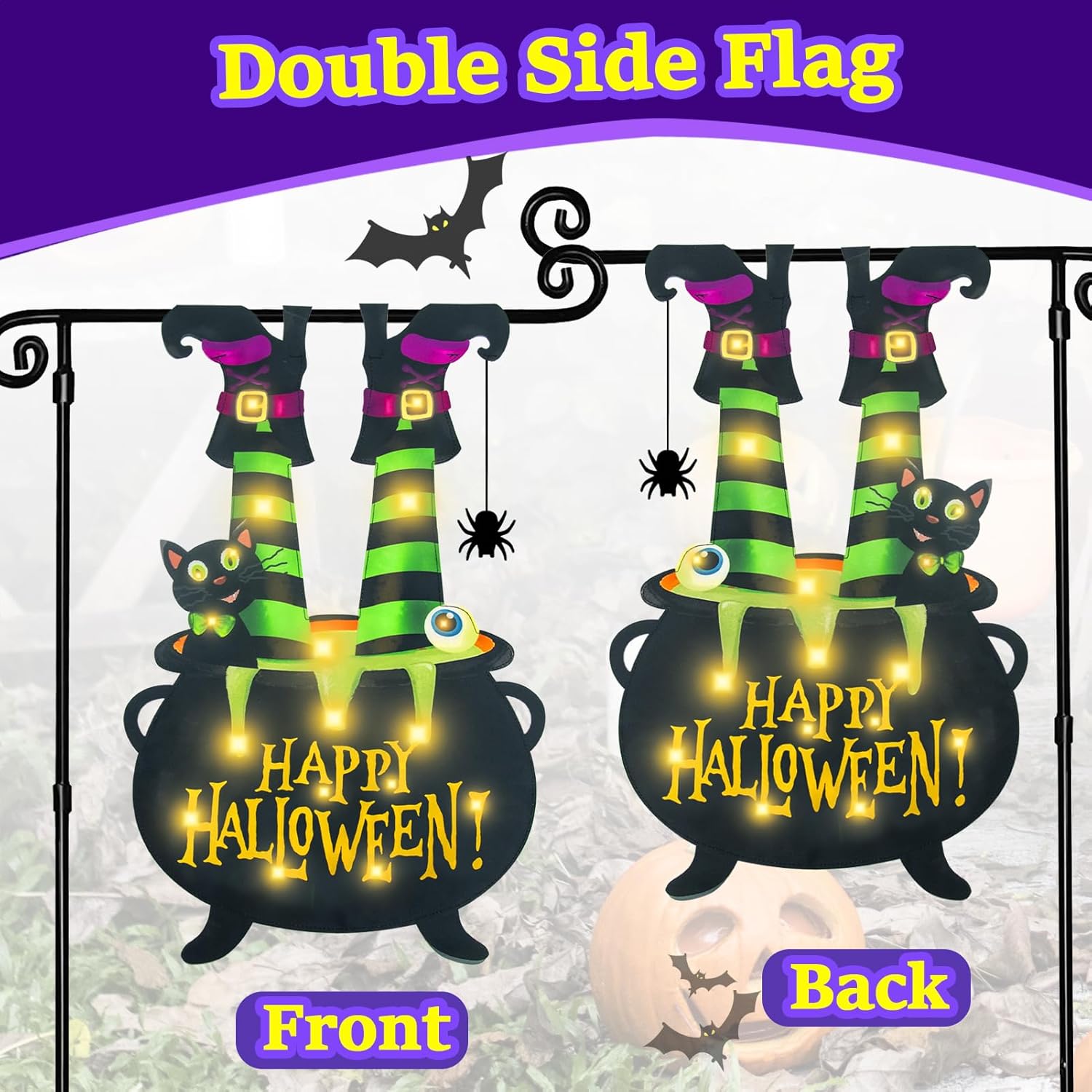 - 【CUSTOMER SERVICE】We stand behind our products and believe you will love this special Halloween lighted garden flag. But if for any reason you are not satisfied, just contact us