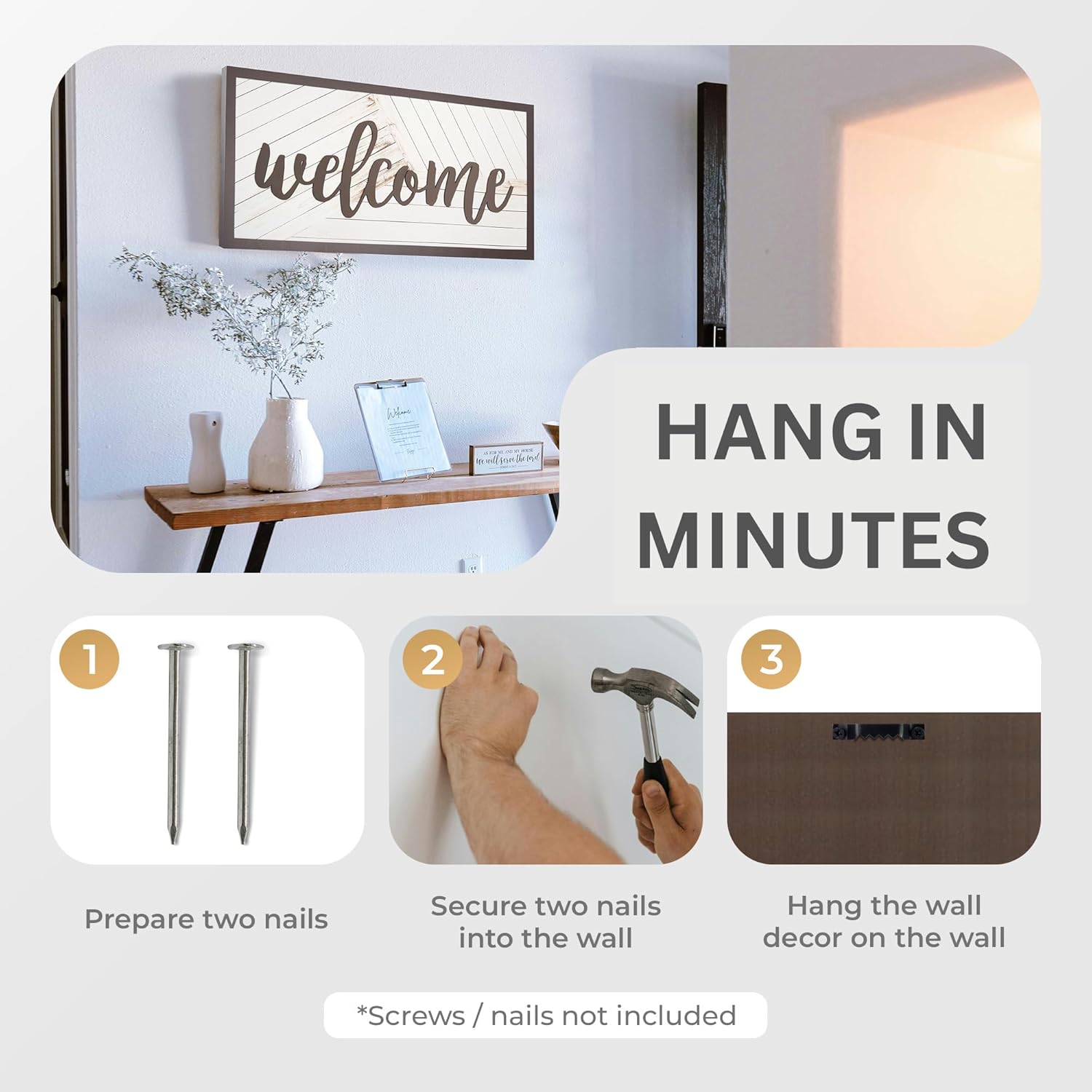 - [UNIQUE DESIGN] Welcome guests with warmth and style. This rustic wooden welcome sign features a handcrafted frame and raised lettering for a timeless farmhouse look. Neutral tones blend effortlessly with farmhouse, rustic, or modern décor, making it a charming addition to entryways, living rooms, or foyers.