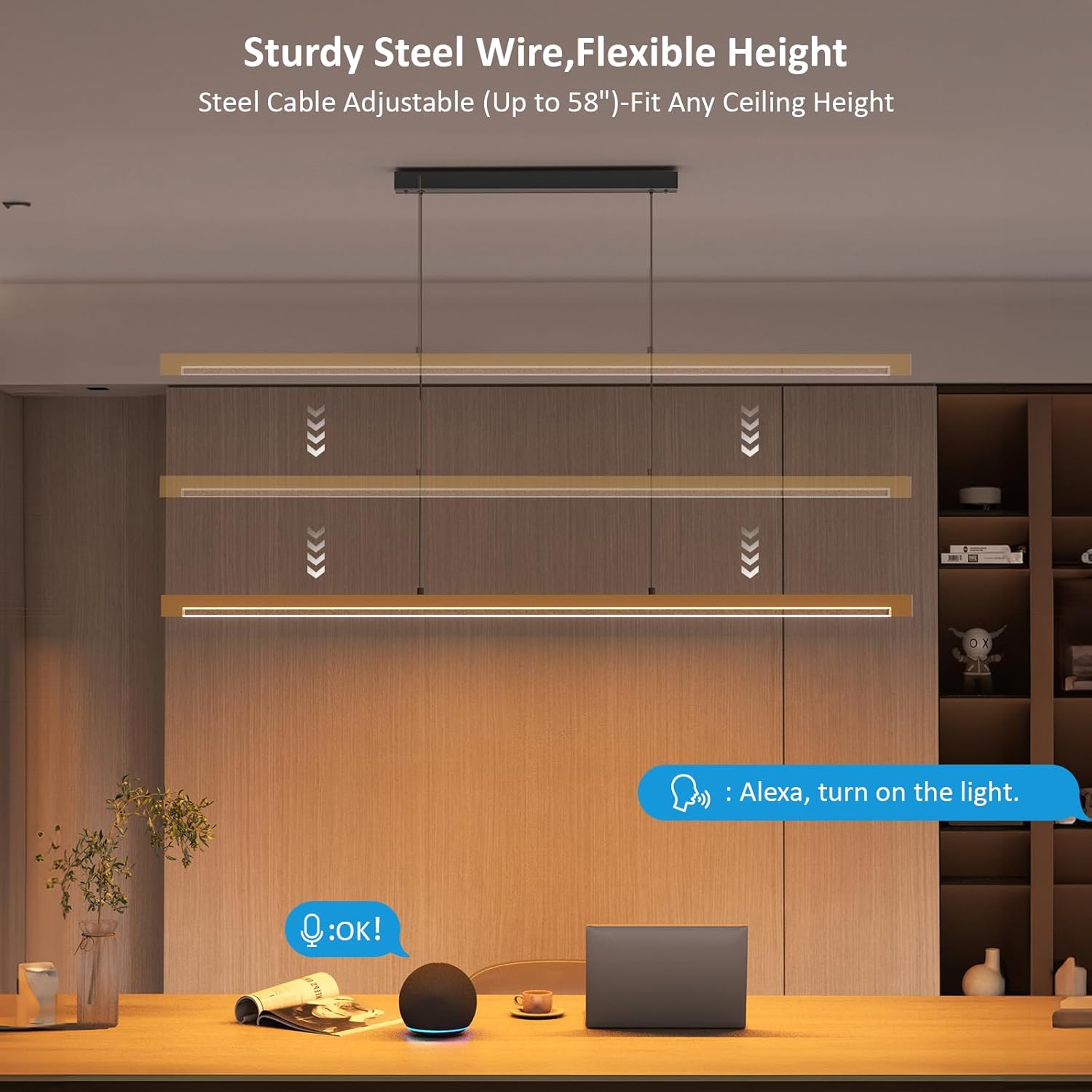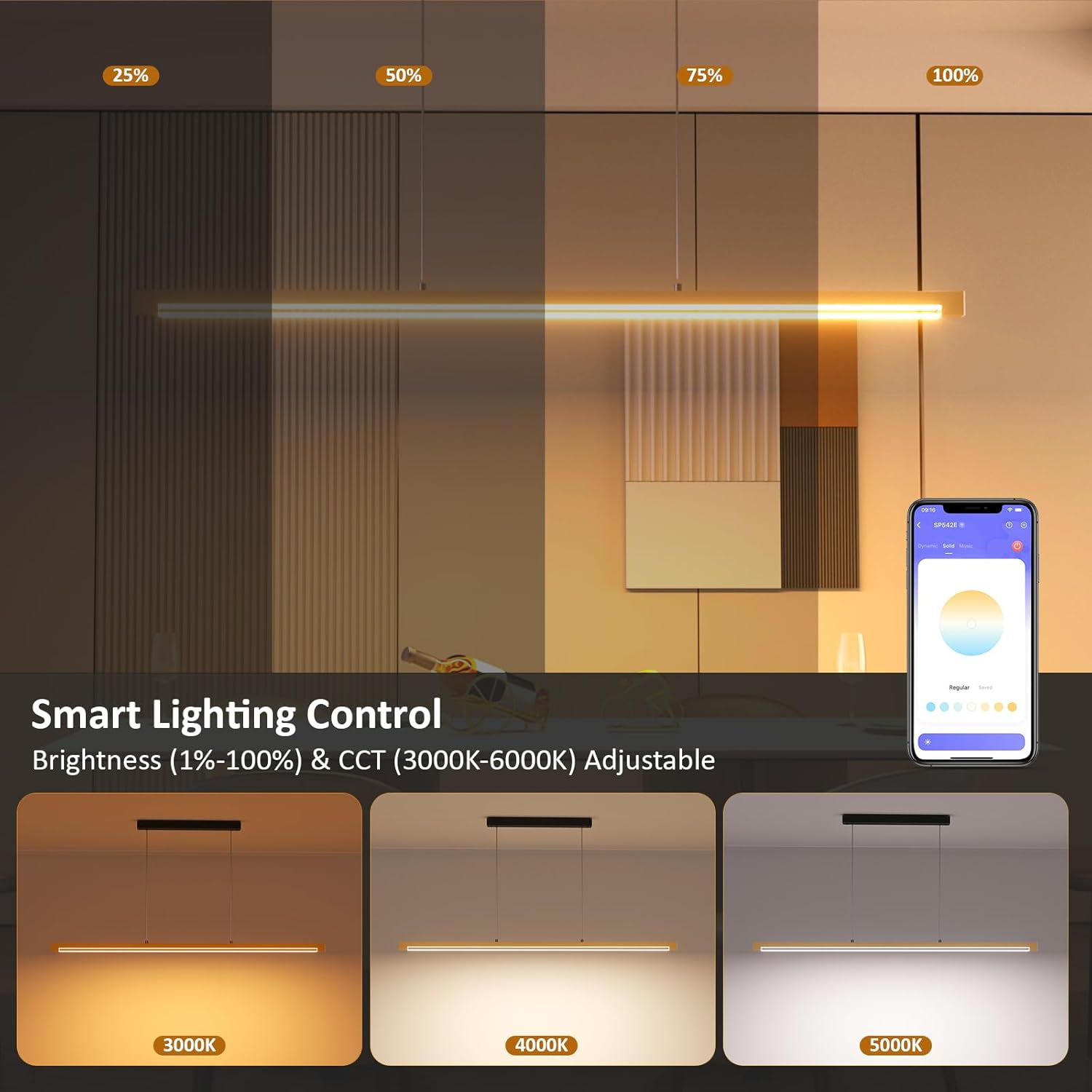 - 【Smart & Voice Control Pendant Light】Seamlessly control brightness and color temperature (3000K-6000K) via smartphone app, RF 2.4G remote, or Alexa voice commands for hands-free convenience.