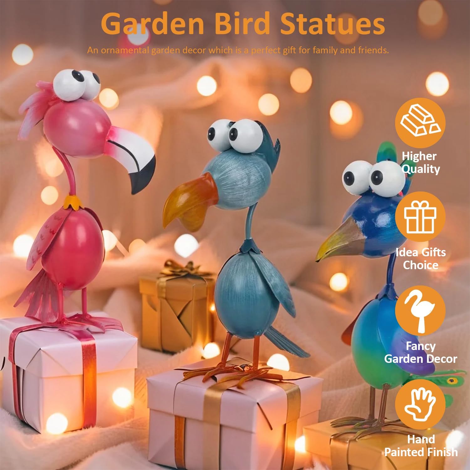 - A Perfectly Sized Bird: Metal birds with different appearances can immediately catch your and your neighbors' attention, whether indoors or outdoors. Whether in the living room, bedroom, study, dining room table, lawn, porch, yard, garden, front door or tree edge.