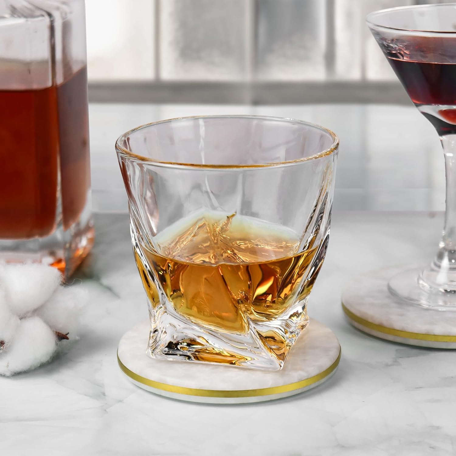 - [ Elegant Home Decor ]: Each coaster is accented with a golden brass ring, adding a touch of luxury and making it stand out from typical marble coasters. This elegant set will elevate the style of any space.