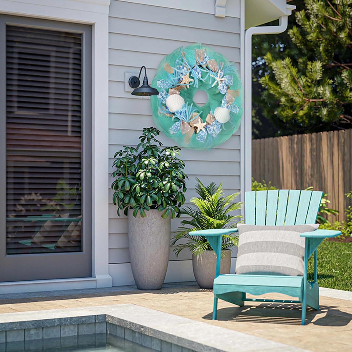 - 【Perfect for Any Space & Season】Whether hung on your front door, porch, living room wall, or used as a wedding or party backdrop, this wreath offers year-round beauty. Its durable construction and refreshing seaside colors make it suitable for spring, summer, and even beach-themed winter decor.
