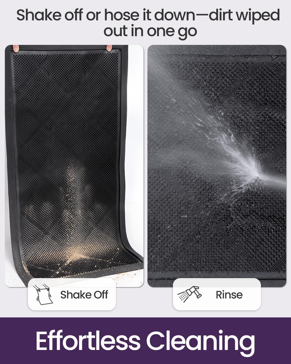 - Easy to Clean: Simply shake off dust and debris for daily maintenance. For a deeper clean, use a hose to rinse the mat to remove mud and dirt. Always dry in well-ventilated areas. Easy upkeep for busy households or entrances