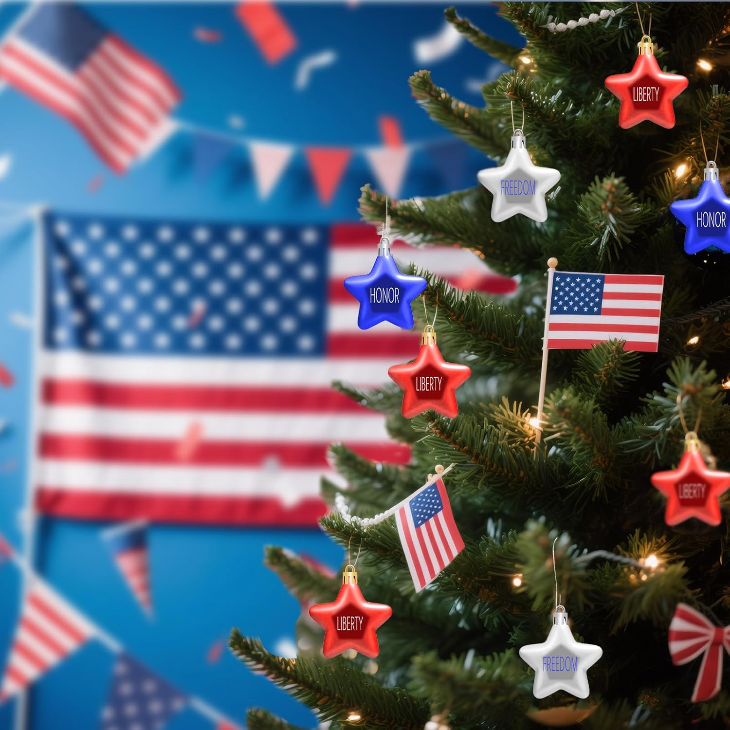 - Patriotic Ball Ornaments:This set includes 24 patriotic 3D hanging star ornaments in classic red, blue, and silver. Each ornament measures approximately 1.97 inches (5 cm) in diameter. Perfect for indoor or outdoor parties to showcase your patriotic spirit.