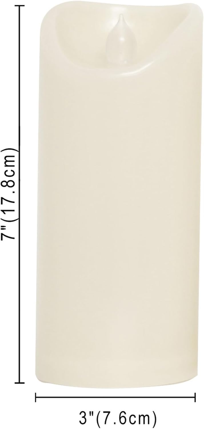 CANDLE CHOICE Outdoor Battery Operated Flameless Candles with Remote Timer Waterproof Flickering Plastic Electric LED Pillar Lights for Lantern Patio Garden Wedding Party Decorations 3x7 Inches 2 PCS