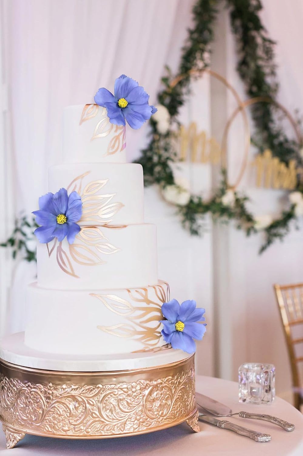 - Quantity and Size: Packed 5PCS blue cosmos artificial flowers. Total approx. 24.5inches/62cm height, bigger daisy flower 3.15”/8cm, smaller 2.36'' /6cm, cosmos bud 1.18”/3cm. Each daisy flowers artificial wildflowers set with 4 large flower heads, 1 small and 1 bud, total with 30 flowers heads. The long stem artificial flowers is ideal for your tall flowers for floor vase floral arrangements