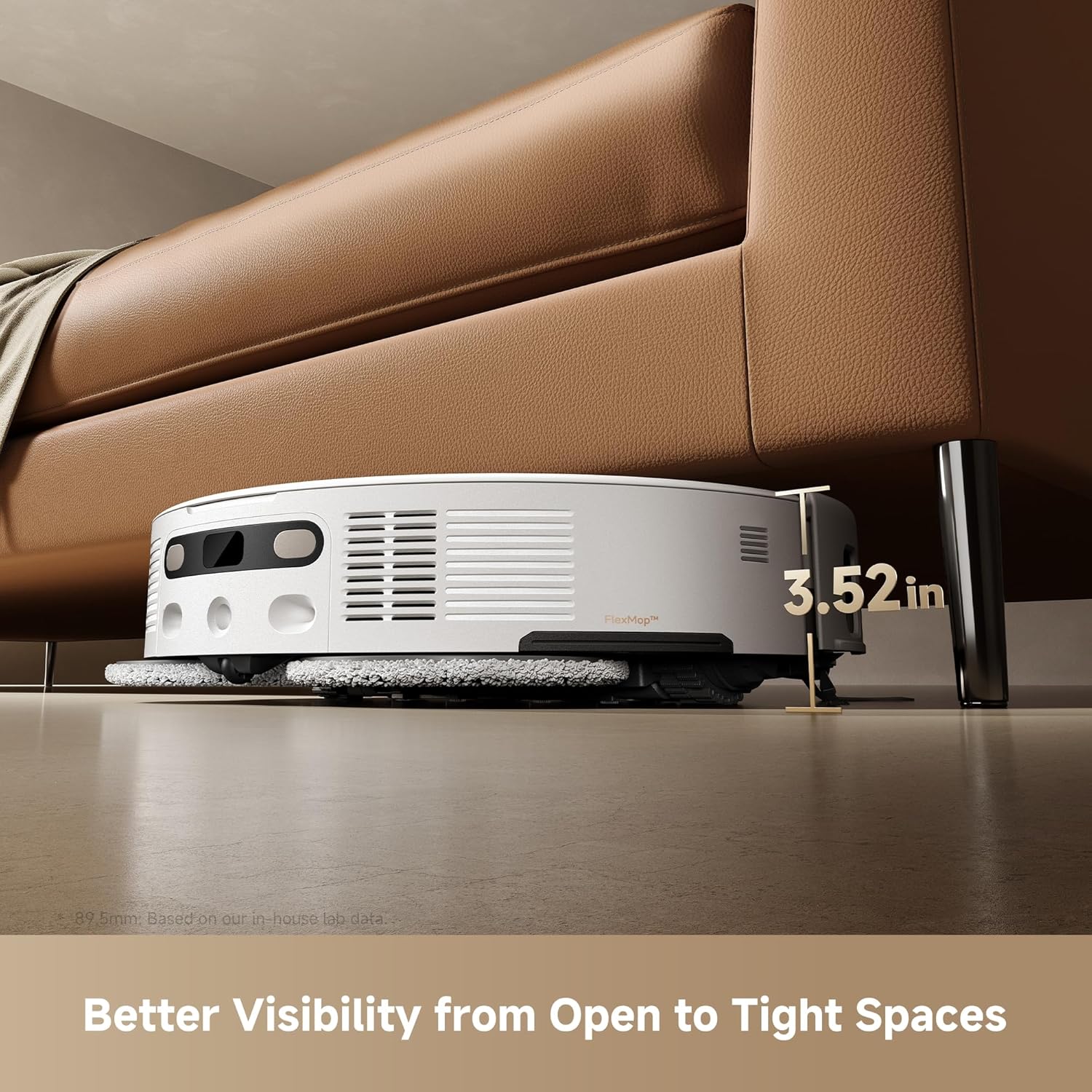 - FlexiRise Navigation: As soon as the Versalift LDS sensor detects narrow spaces such as under the sofa, the sensor is retracted to achieve a more compact size; in open areas, it is extended and thus guarantees better visibility, precise navigation and efficient route planning.