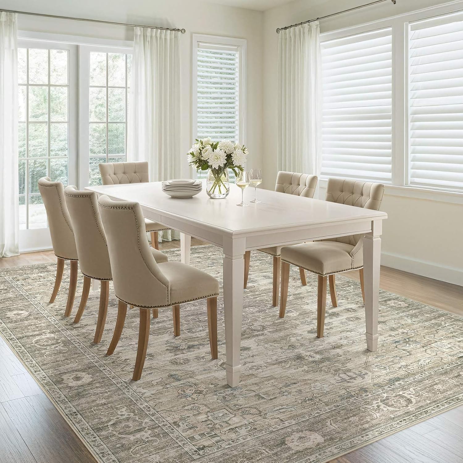Washable Area Rugs for Living Room -10x12 Neutral Vintage Distressed Floral Farmhouse Boho Large Soft Floor Rug Indoor Non Slip Carpet for Living Room Bedroom Dining Room Office -Brown/Tan