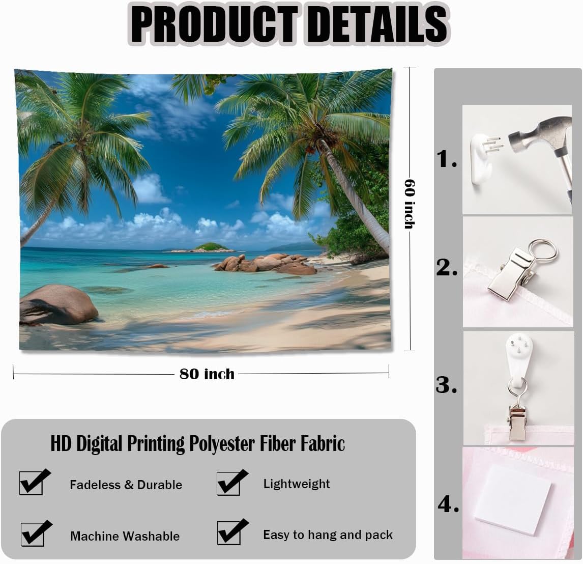 - Easy to Hang & Lightweight: Made from soft, lightweight fabric, this seaside tapestry is easy to hang with thumbtacks, hooks, or string. It folds easily for storage or travel, perfect for dorm rooms or temporary spaces