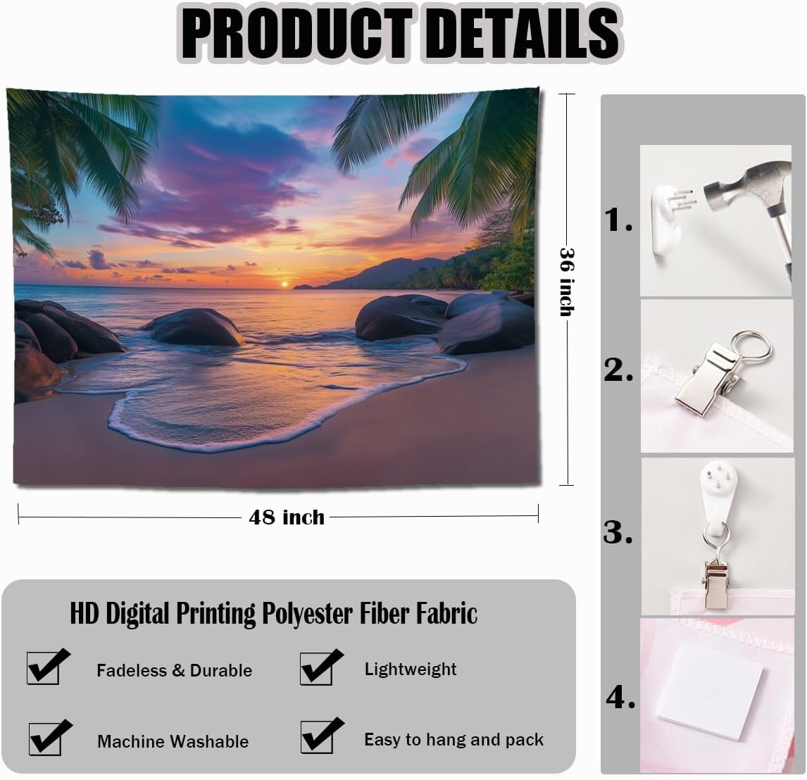 - Lightweight & Easy to Display: Crafted from soft, lightweight fabric, this tapestry is easy to fold, store, and hang using pins, hooks, or clips. Perfect for renters, students, or anyone looking to refresh their space with beachy sunset charm