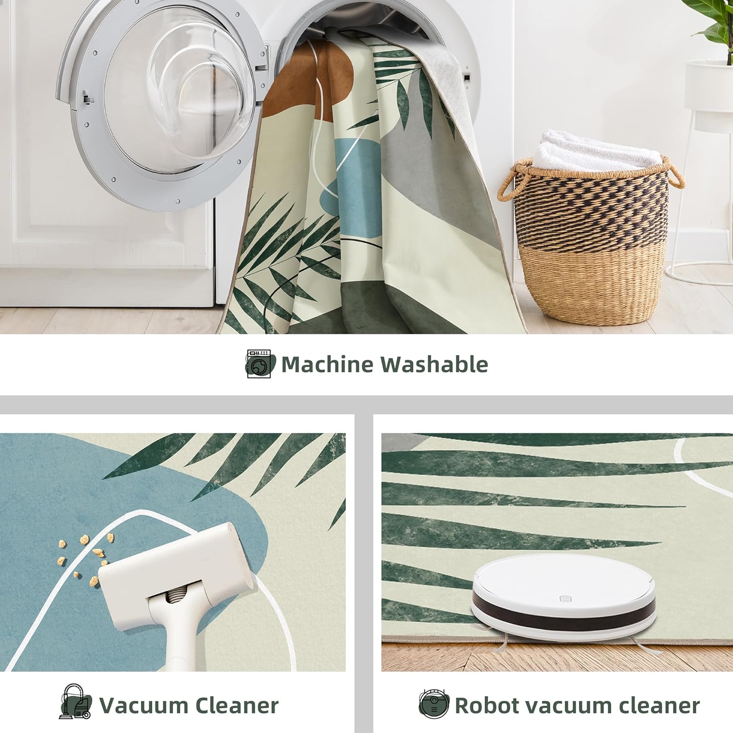 Indoor Outdoor Area Rug, Mid Century Outdoor Patio Rug, Washable Abstract Art Leaves Eucalyptus Rugs, Non-Slip Carpet for Camping, Living Room, Bedroom, Deck(8x10)