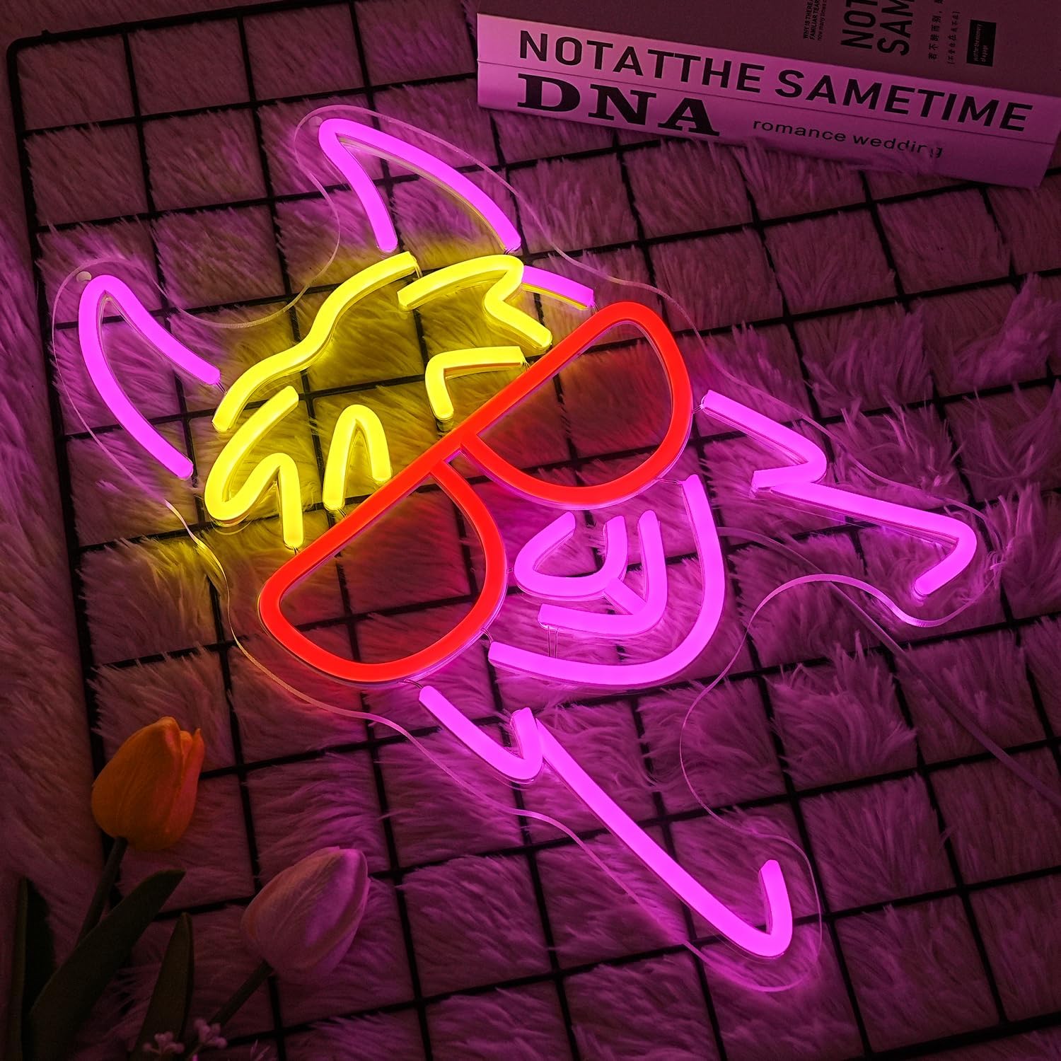- Unique design:Llama with red glasses neon signs, brightly colorful and eye-catching. Funny animal neon lights display vitality and enthusiasm, can be used for rock music, concerts, and bedroom wall decoration.
