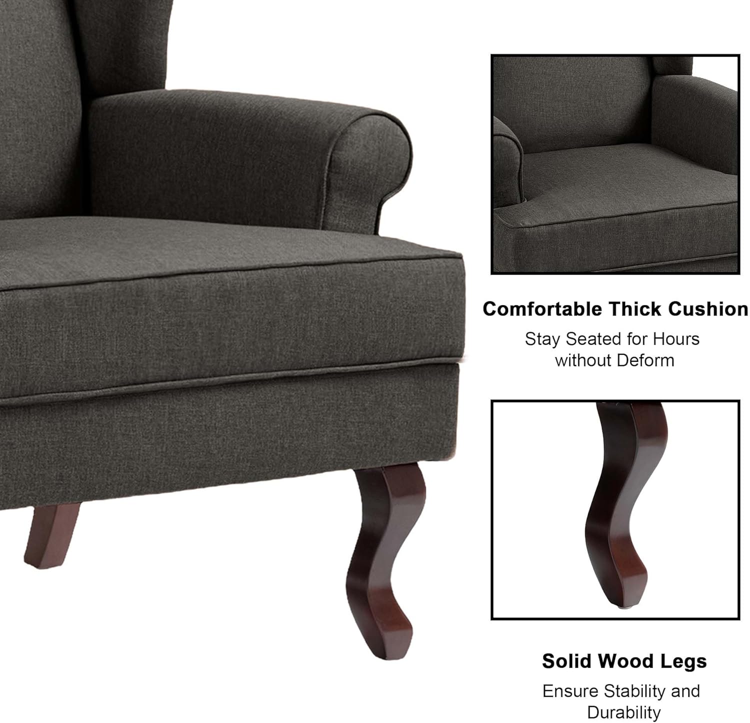 - High Wingback Chair Design: The back of arm chair is higher, which can better relieve the pressure on the back and waist, and bring a comfortable sitting experience