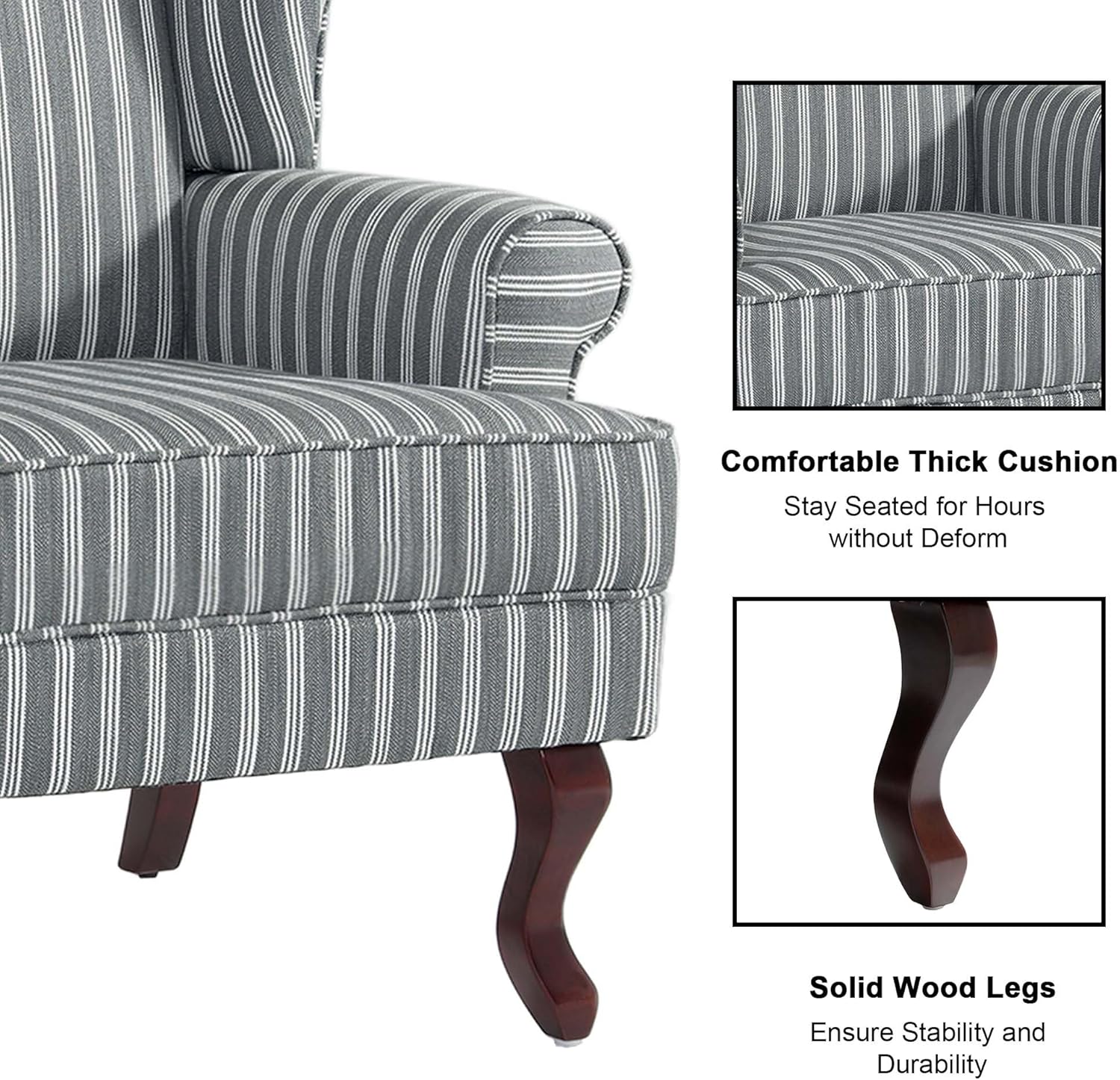 Accent Chair, High Back Upholstered Armchair with High Resilience Sponge & Wood Legs, Mid-Century Modern Comfy Single Sofa Reading Chairs for Living Room, Bedroom (Stripe Grey, Set of 1)