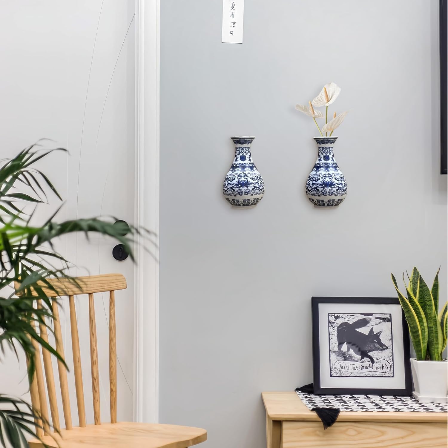 - Chic Home Accent: Infuse modern spaces with classic charm. These blue and white ceramic wall decor pieces work as wall mounted flower vases for home décor, enhancing your living room, entryway, or office with cultural flair