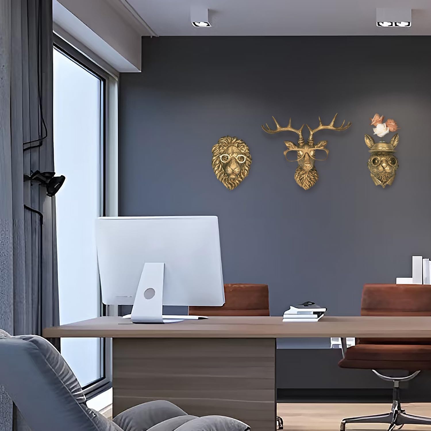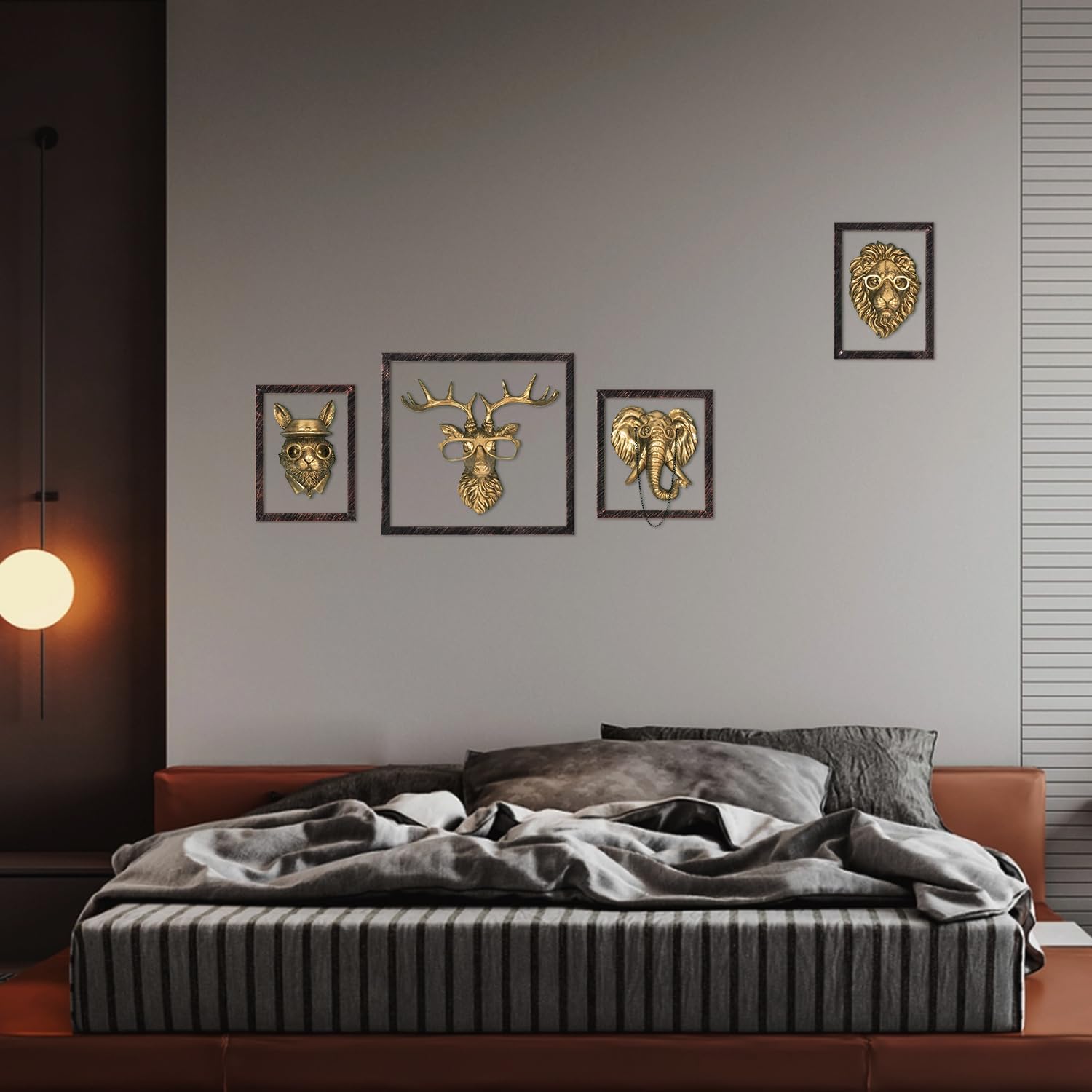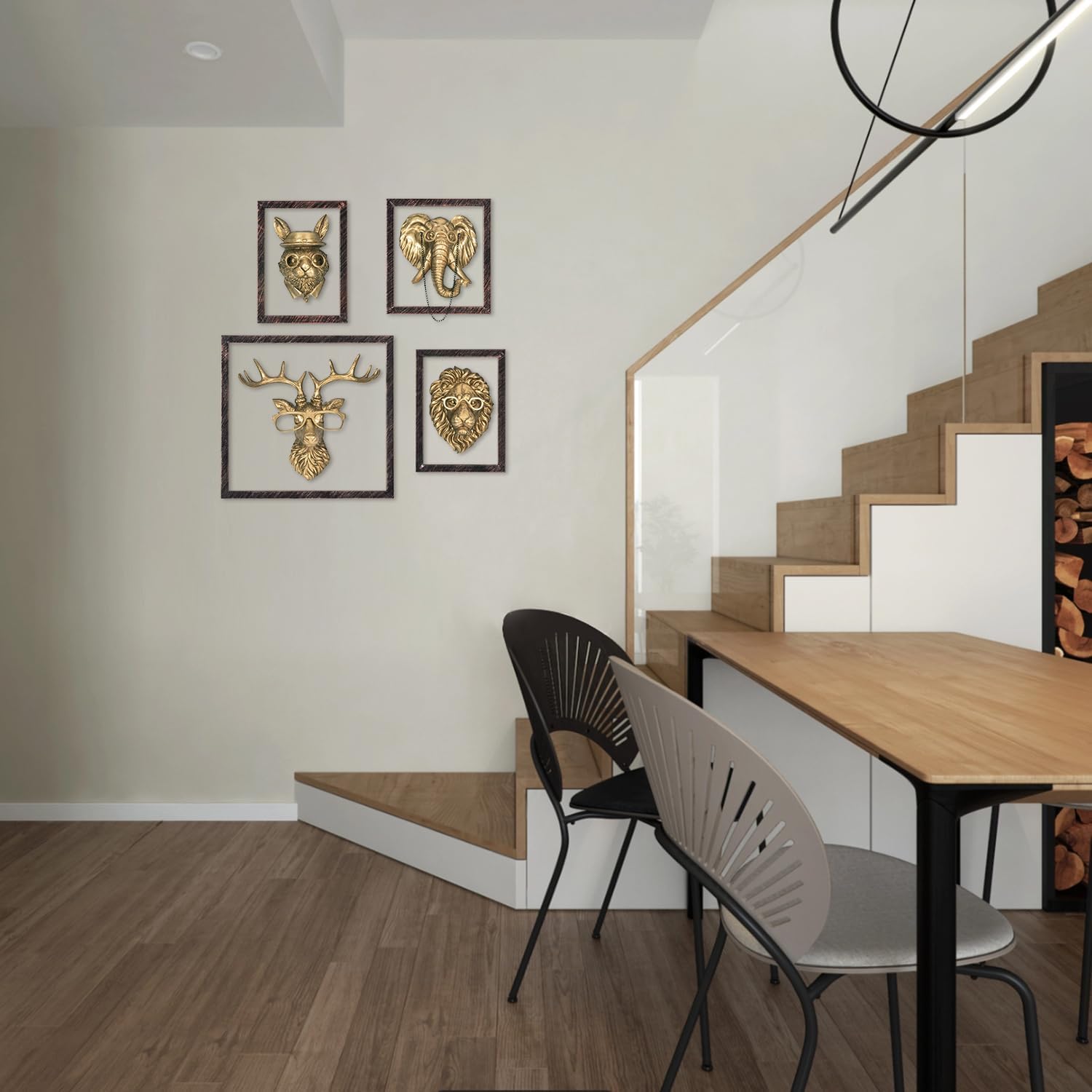 HUYIENO 4PK Animal Head Wall Decor with Metal Frame Flower Vase Gold Handcrafted Hanging Home Decor Sculptures for Living Room Bedroom