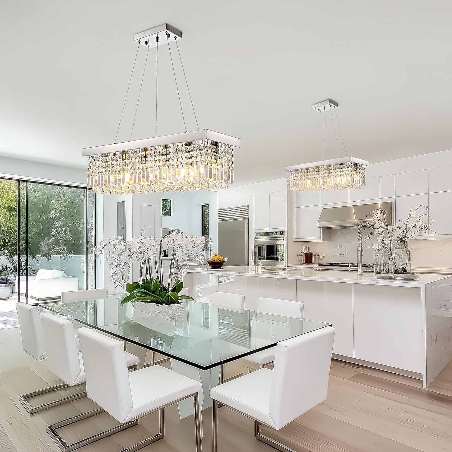 - EASY INSTALLATION: This rectangle modern chandelier comes with all necessary mounting hardware and a detailed instruction manual for quick, hassle-free setup. The user-friendly design and secure packaging ensure that each crystal arrives intact – your new chandelier will be ready to shine in your foyer, dining area, or kitchen with minimal effort.