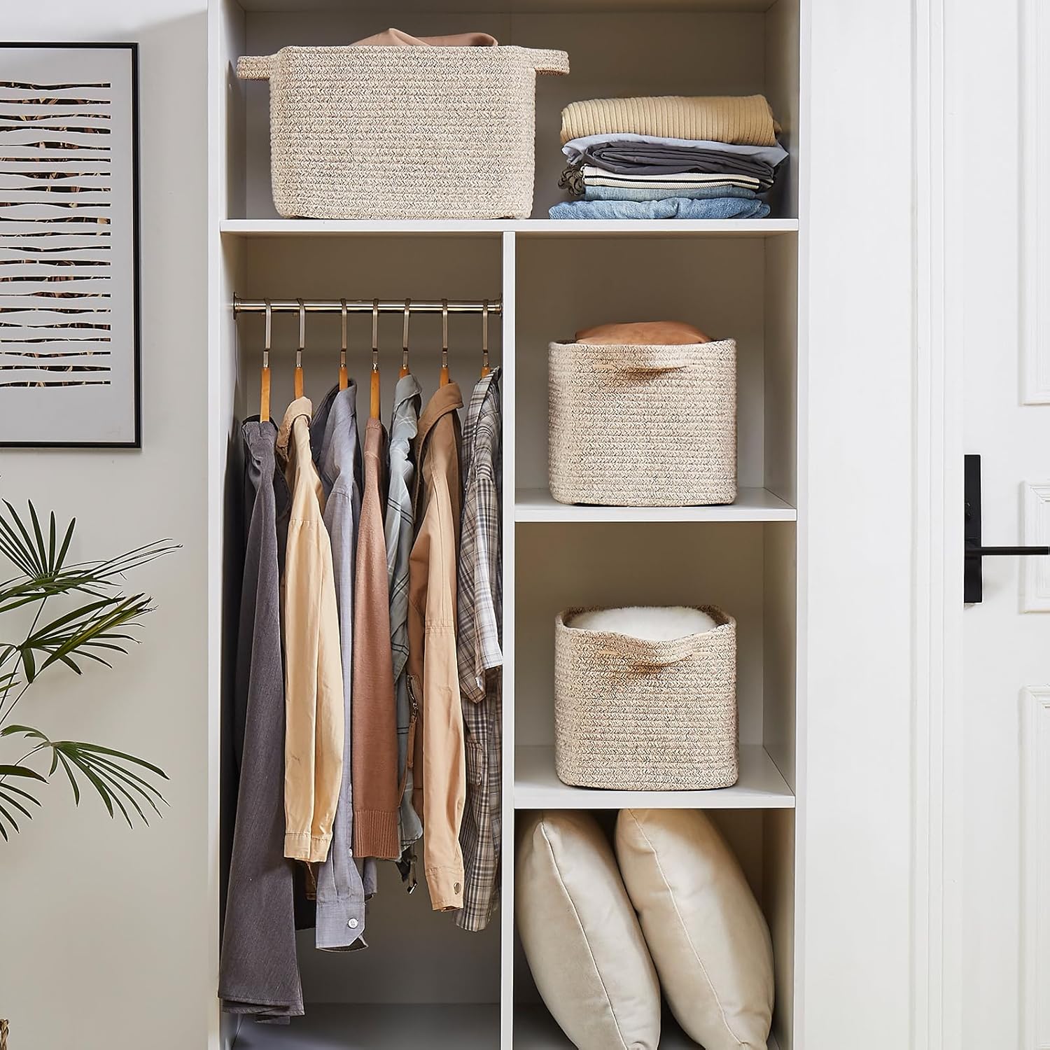 OIAHOMY Storage Basket, Woven Baskets for Storage, Cotton Rope Basket for toys,Towel Baskets for Bathroom - Pack of 3, Pure Brown