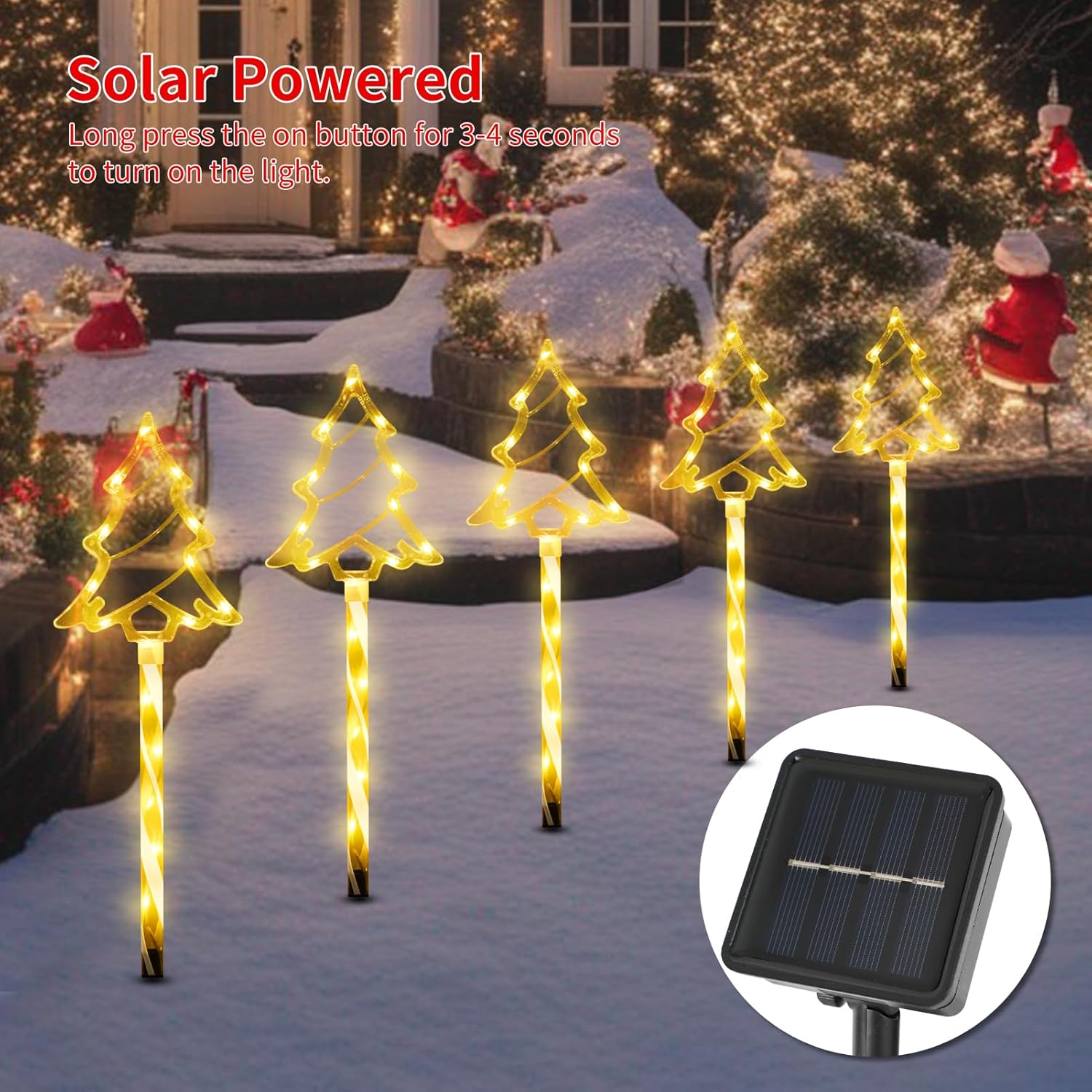 Christmas Solar Pathway Lights Outdoor Decorations, 8 Modes Xmas Tree Candy Lights Waterproof Led Garden Stake Light for Walkway Yard Lawn Porch Holiday Decor 5-Pack (Yellow Tube Tree, 5 Pack)