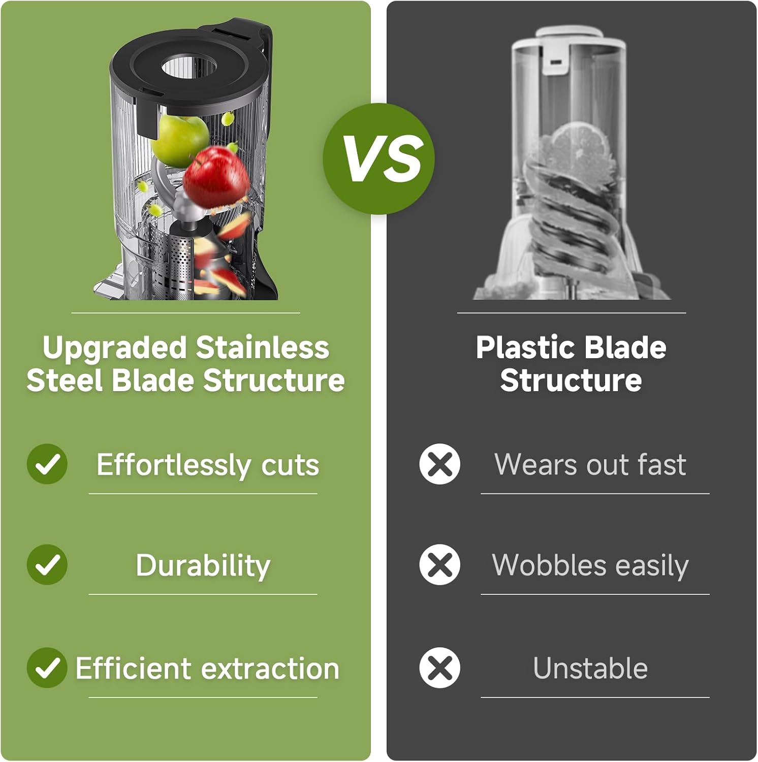 - [Maximized Juice Yield]: Our upgraded juicer machines features a larger auger that applies high pressure at a low speed, ensuring you extract every last drop.