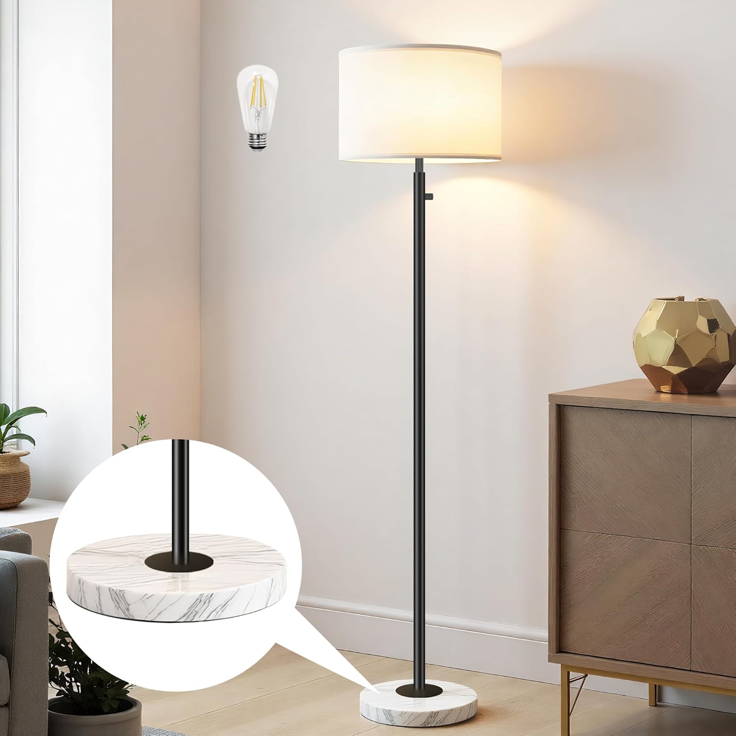 Floor Lamp for Bedroom,Modern Floor Lamp for Living Room,Standing Lamp with Marble Base,Tall Standing Lamp for Bedroom,Reading,Office & Kids' Room,LED Bulb Included(Black)