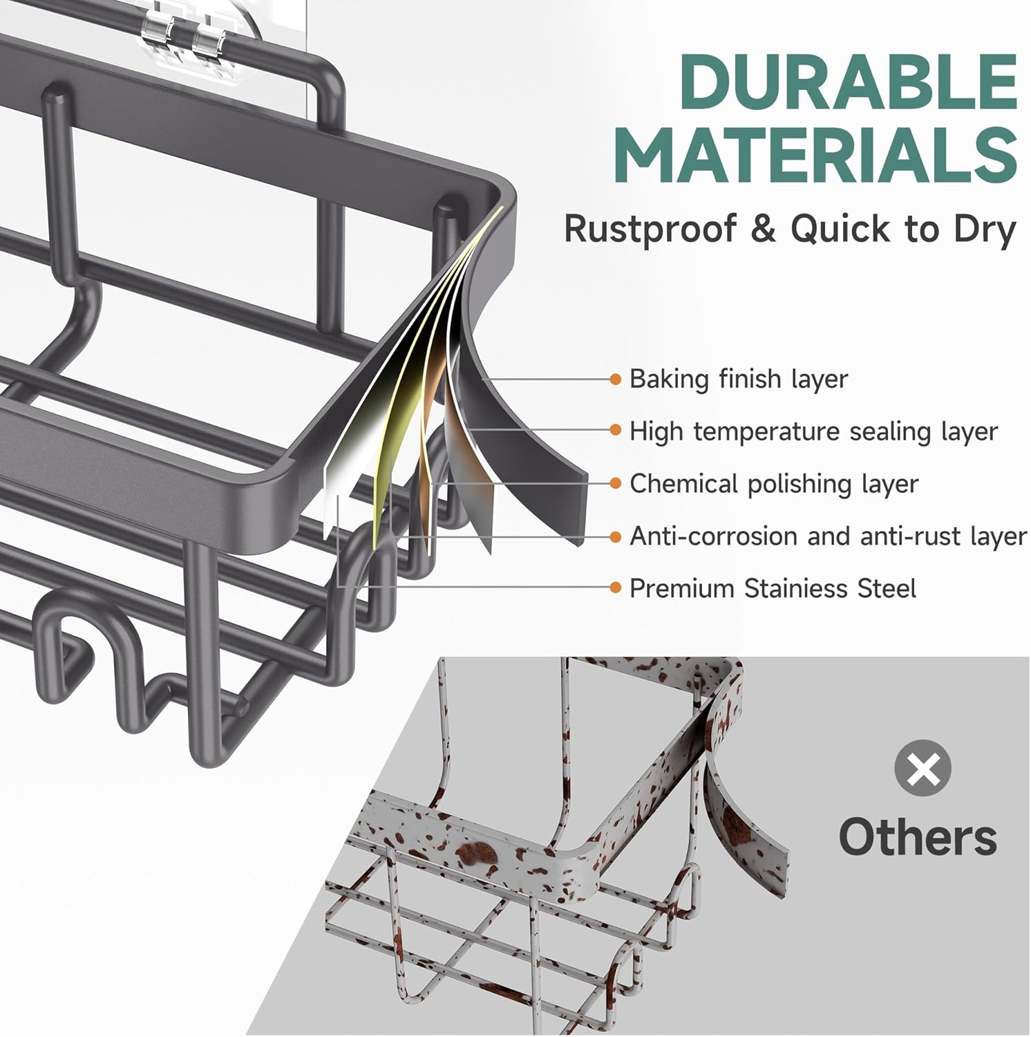 - Waterproof & Rust-Resistant: Engineered with waterproof and rust-resistant components, this caddy maintains its quality and appearance over time, even in damp environments