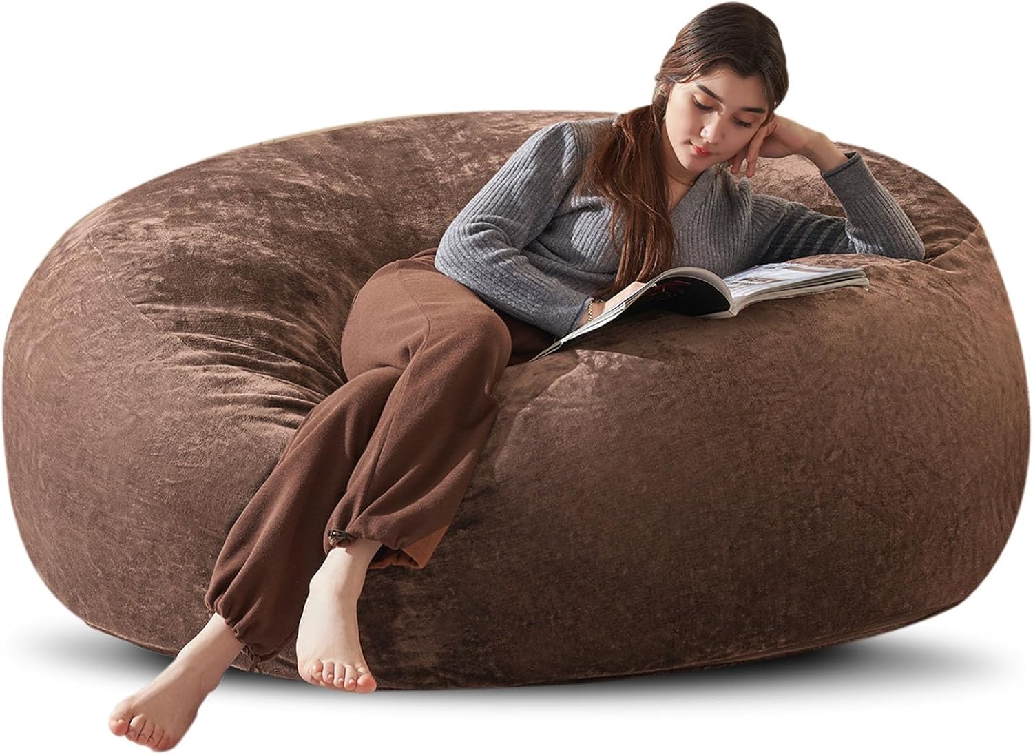 Bean Bag Chair 6Ft, Memory Foam Filled, Large Beanbag Chairs for Adults and Teens, Soft Sofa with Removable Flannel Cover, Round Couch for Living Room Bedroom College Dorm (Coffee, 6FT-67×67"×24")