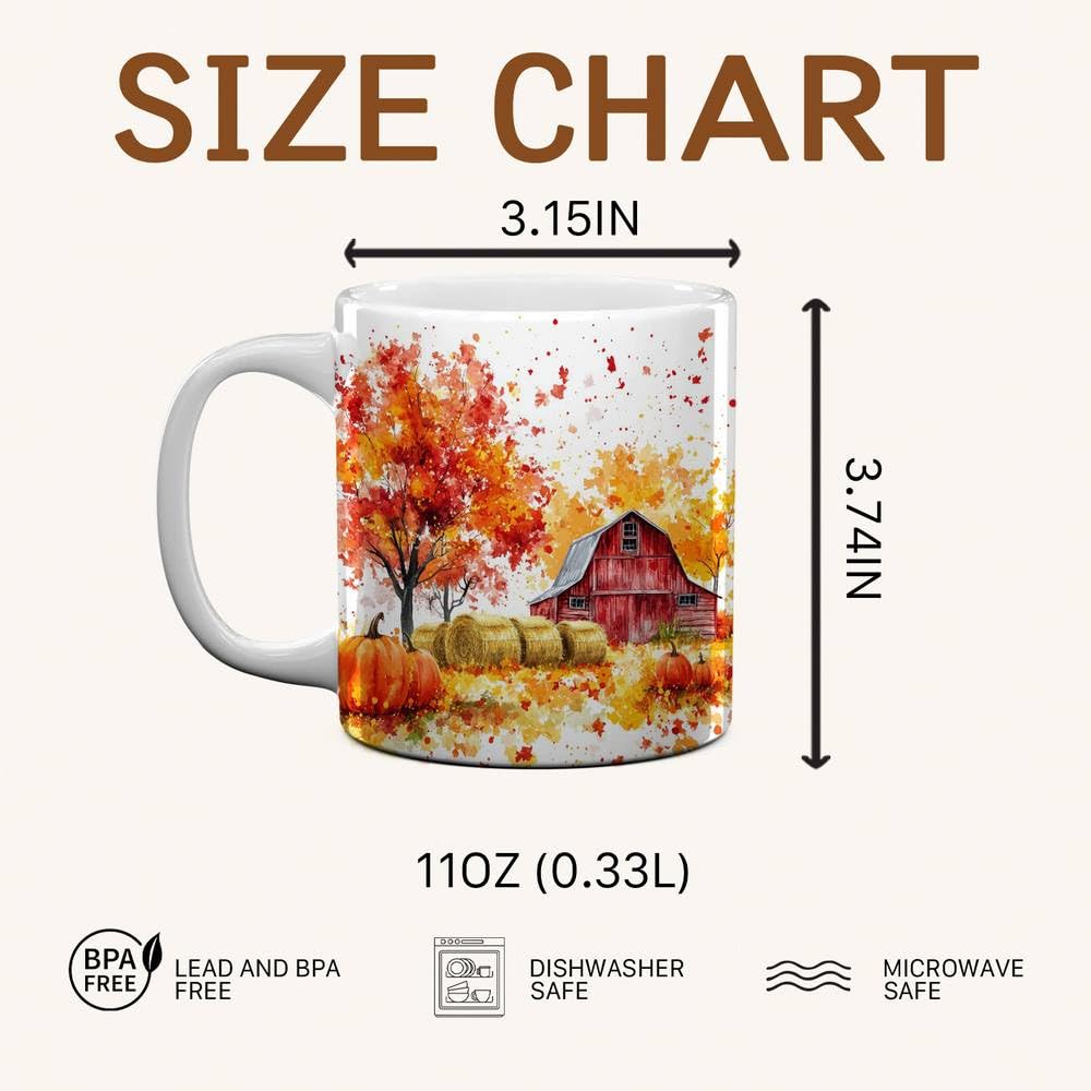 - ๐ผSpecial Occasions Gifts๐ผ: Delight the Autumn Farm lover in your life with this charming Autumn Farm coffee mug, a thoughtful and versatile gift for any occasion. Whether it's a Birthday, Valentine's Day, Easter, Halloween, Christmas, Housewarming, Mother's Day, Father's Day or simply a surprise "just because" moment to show someone you care, this mug is sure to bring a smile to their face.