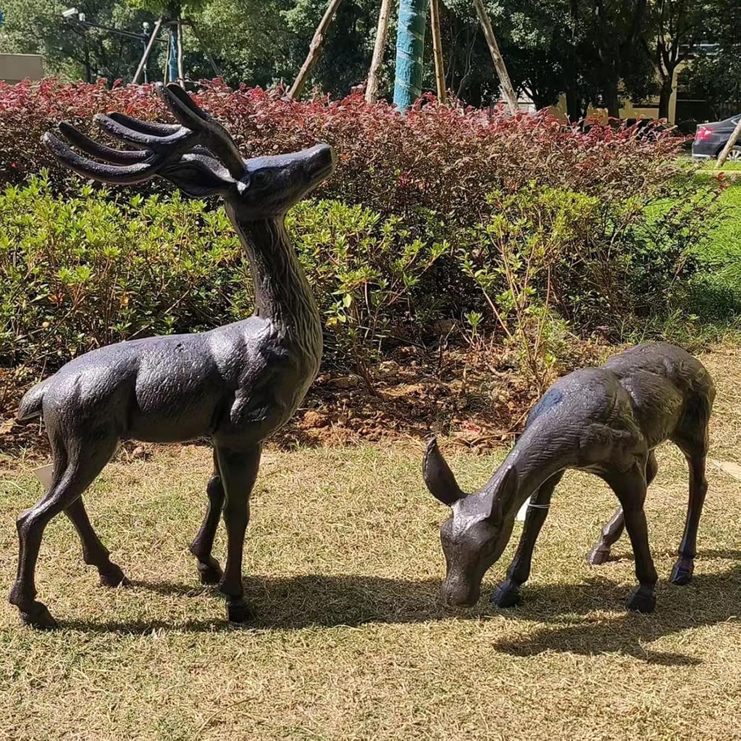 - Realistic Cast Iron Deer Sculptures: Features a lifelike male deer with branched antlers standing proudly and a female deer gracefully grazing, crafted with detailed textures for an elegant animal decor piece.