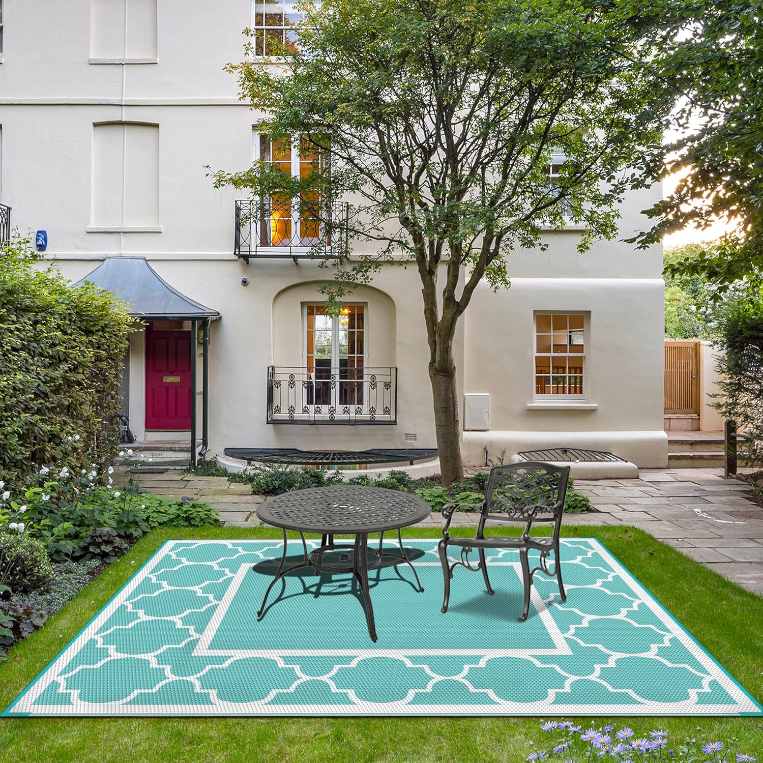 - Versatile Settings: Upgraded polypropylene ensures breathability and fast drying in this outdoor rug waterproof design. Perfect for the patio, deck, backyard, garden, porch, beach, Rv, picnic, or camping. Elevate your outdoor experience with GENIMO