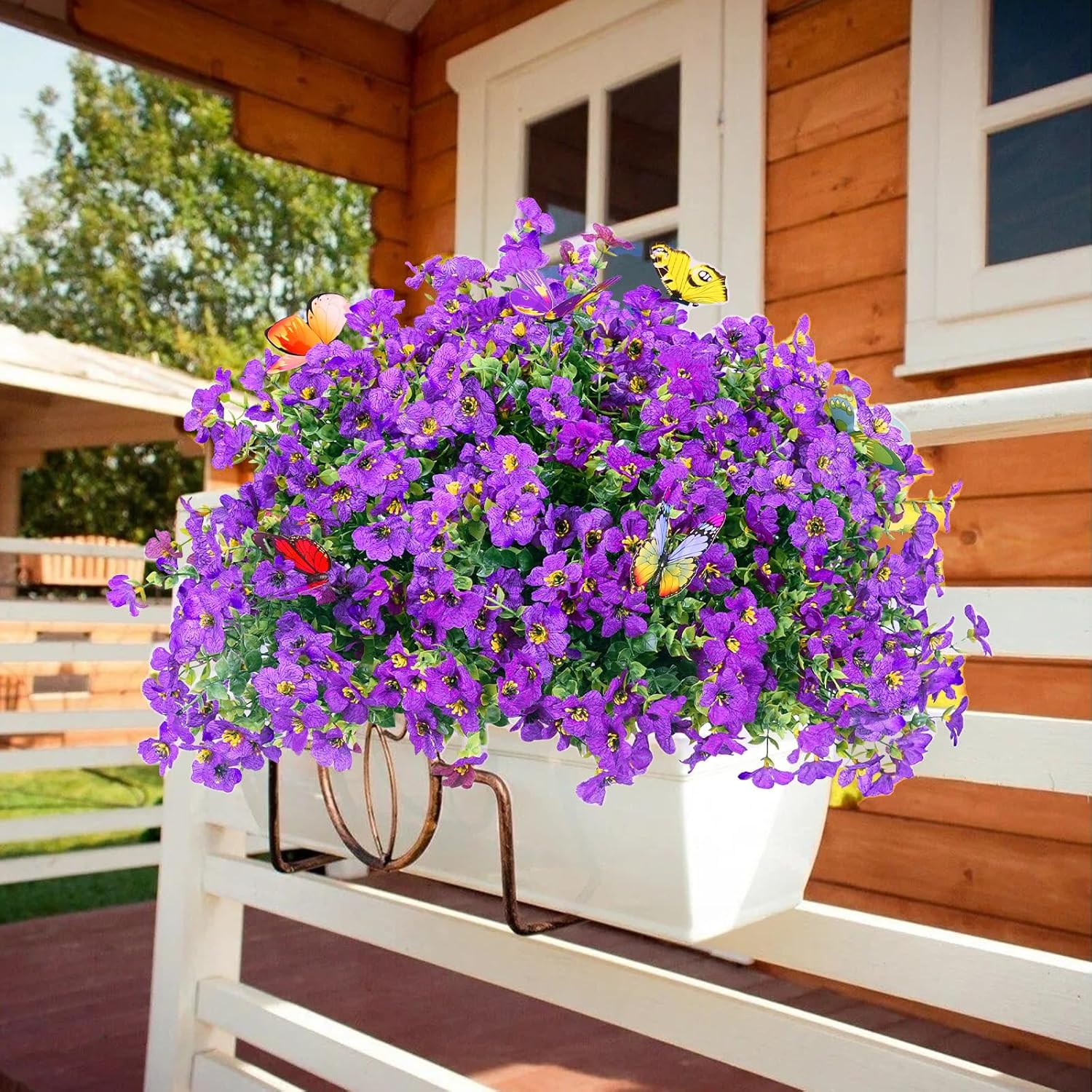 - Realistic Fall Flowers and Butterflies: These artificial outdoor plants with eucalyptus Leaves look real and very lifelike. Paired with the scene of butterflies fluttering among the flowers, it creates a cozy ambiance and brings the colourful flourish beauty of nature into your life.