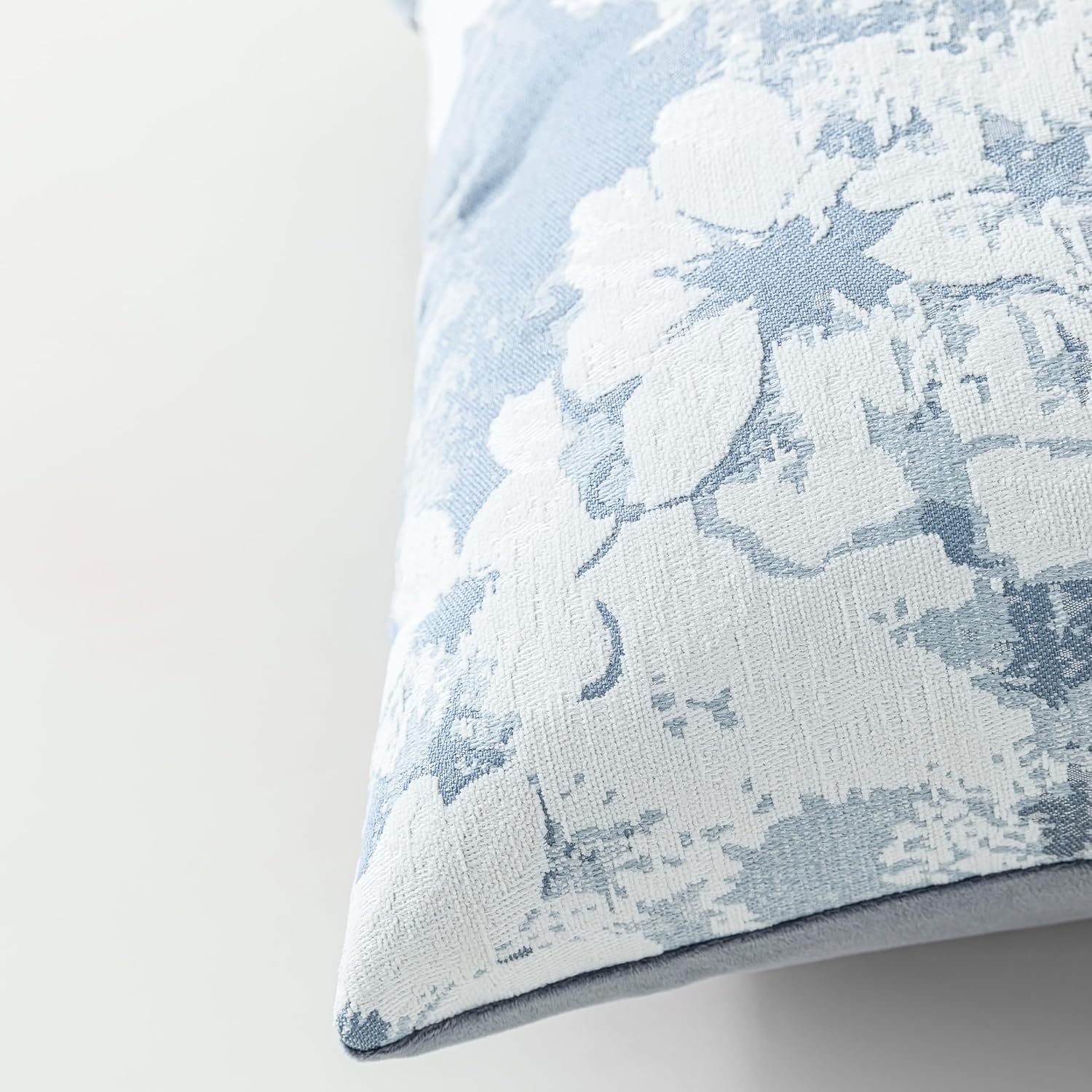 Jacquard Throw Pillow Covers 18x18 Inch Set of 2 - Vintage Floral Boho Pillow Cases with Botanical Pattern | Farmhouse Decor for Couch Living Room | Soft Textured Neutral Trio Dusty Blue 18" x 18"