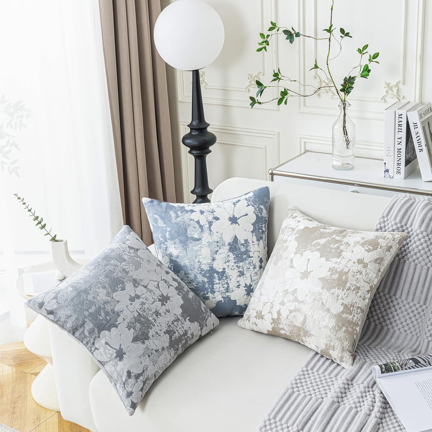 Jacquard Throw Pillow Covers 18x18 Inch Set of 2 - Vintage Floral Boho Pillow Cases with Botanical Pattern | Farmhouse Decor for Couch Living Room | Soft Textured Neutral Trio Slate Gray 18" x 18"