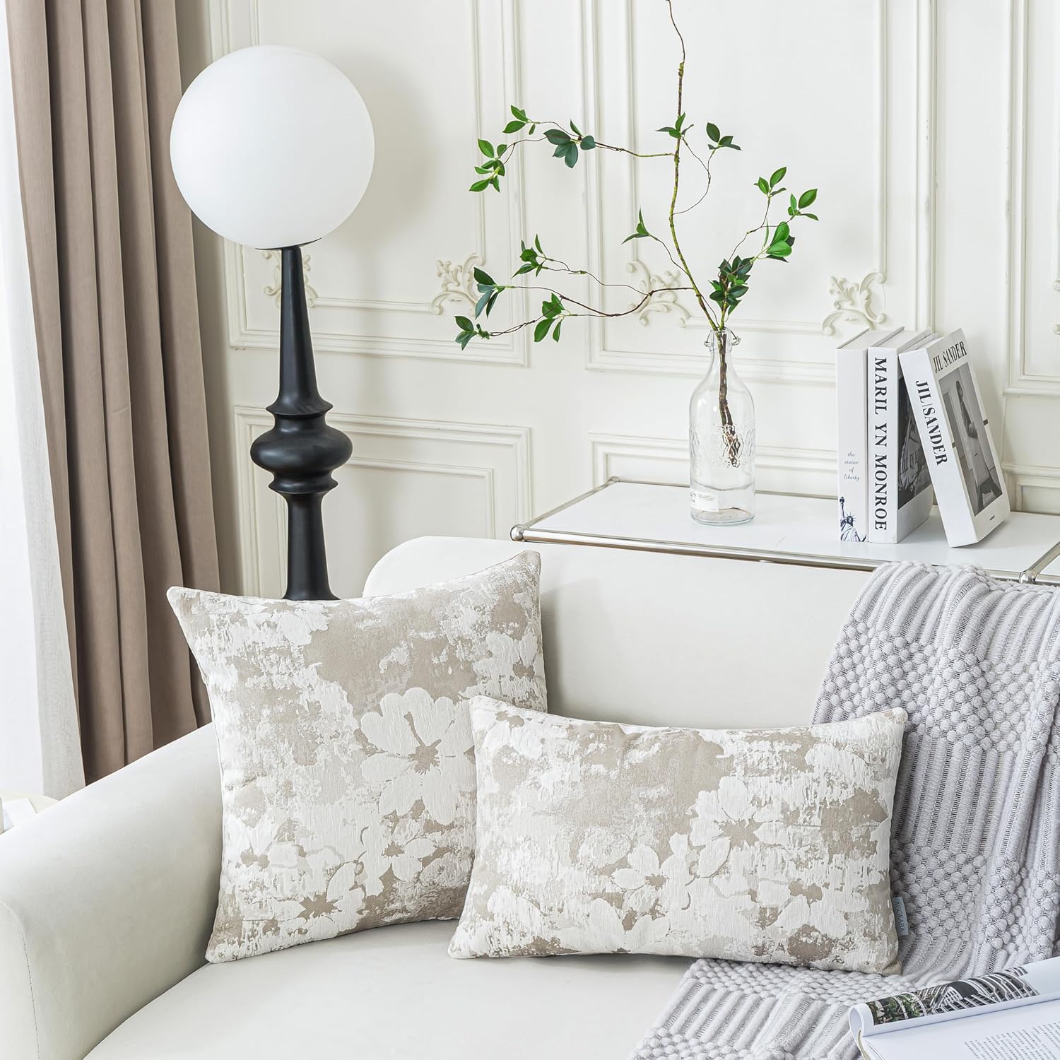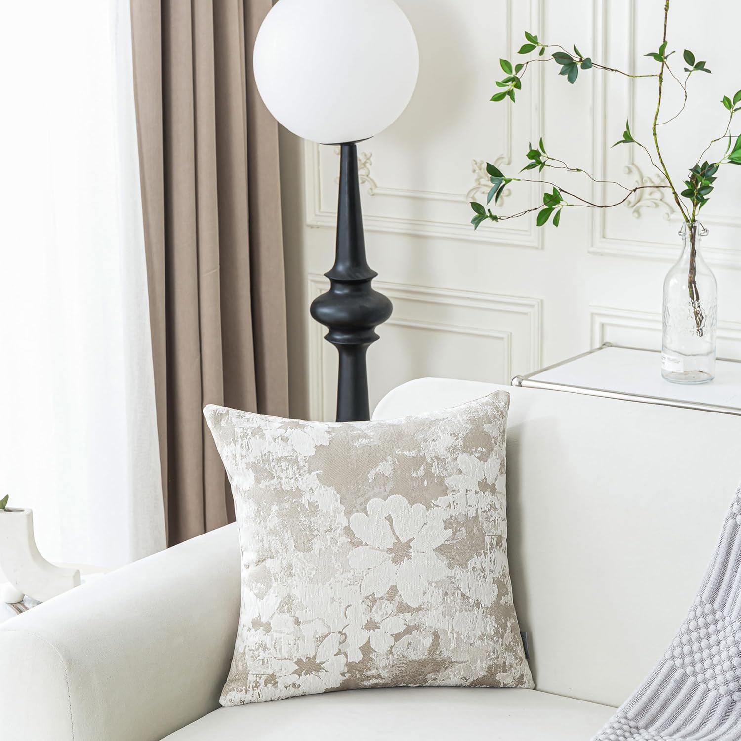 Jacquard Throw Pillow Covers 18x18 Inch Set of 2 - Vintage Floral Boho Pillow Cases with Botanical Pattern | Farmhouse Decor for Couch | Soft Textured Neutral Trio Light Khaki Warm Beige 18" x 18"