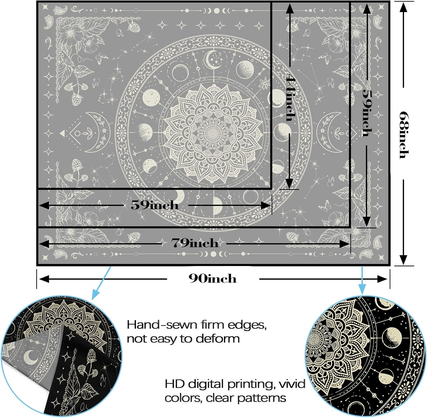 - Unique Mandala Moon Design: This Lunerfex tapestry features an intricate mandala design combined with cosmic elements, creating a mysterious and artistic touch for your bedroom or living room.