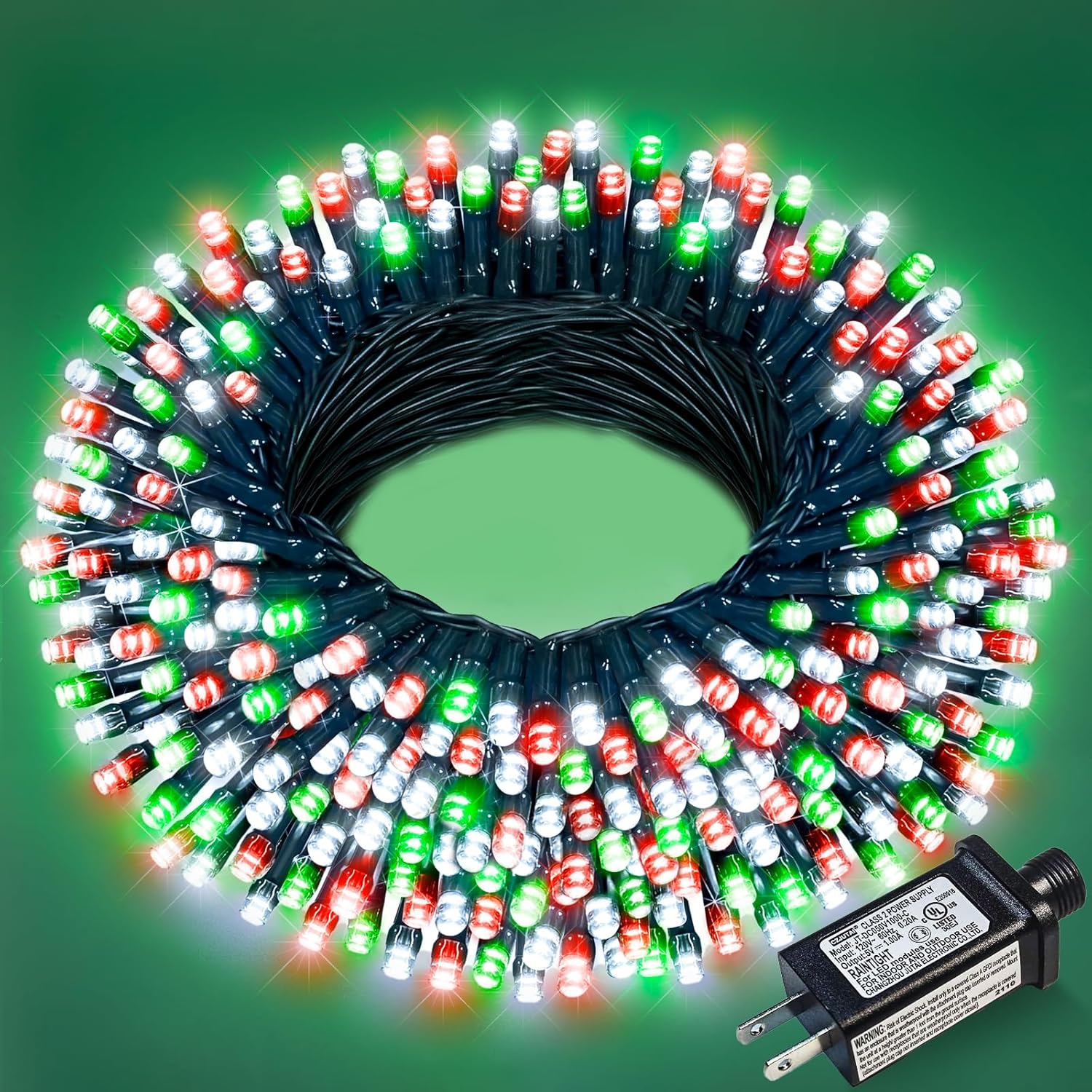 66FT 200 LED Christmas Lights Outdoor, Christmas Tree Lights with 8 Modes Waterproof, Plug in Connectable String Twinkle Light Green Wire for Tree Patio Wedding Party Decorations, Red White Green
