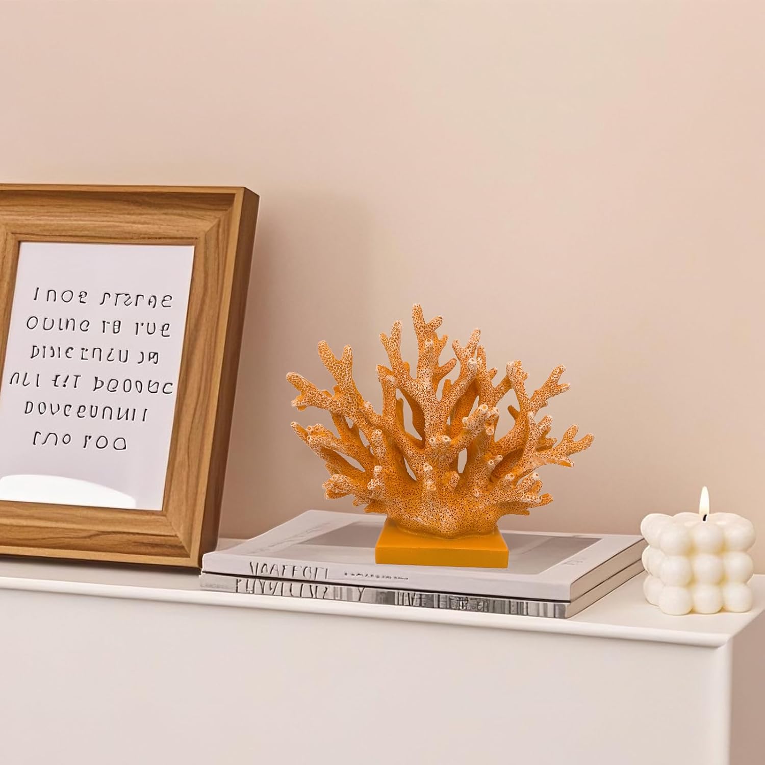 5.8" H Orange Coral Decor - Resin Coral Statue, Nautical Decor for Home, Bedroom, Bathroom, Living Room, Ocean Themed Cabinet Shelf Tabletop Decoration