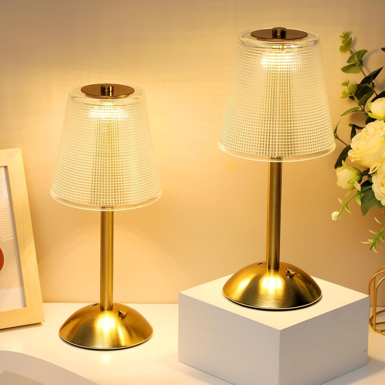 Liliful 2 Pcs LED Portable Cordless Table Lamp Touch Battery Operated Rechargeable Desk Lamp 3 Color Dimmable for Bedroom Living Room Dining (Retro Style,Gold)