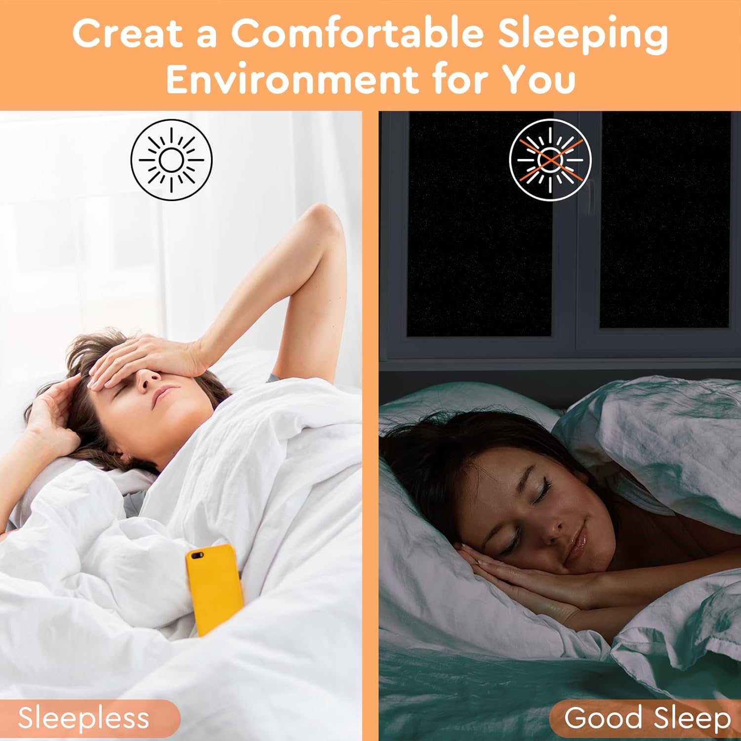 - TOTAL BLACKOUT WINDOW FILM: This window film effectively blocks out 100% UV rays and sun light, protects your skin from sun exposure, prevents your furniture from fading, and keep a comfortable home environment. Black window film offers a high level of privacy and provide double-sided privacy protection at all day, makes your room in completely dark as night, perfect for those who need daytime sleep and complete privacy