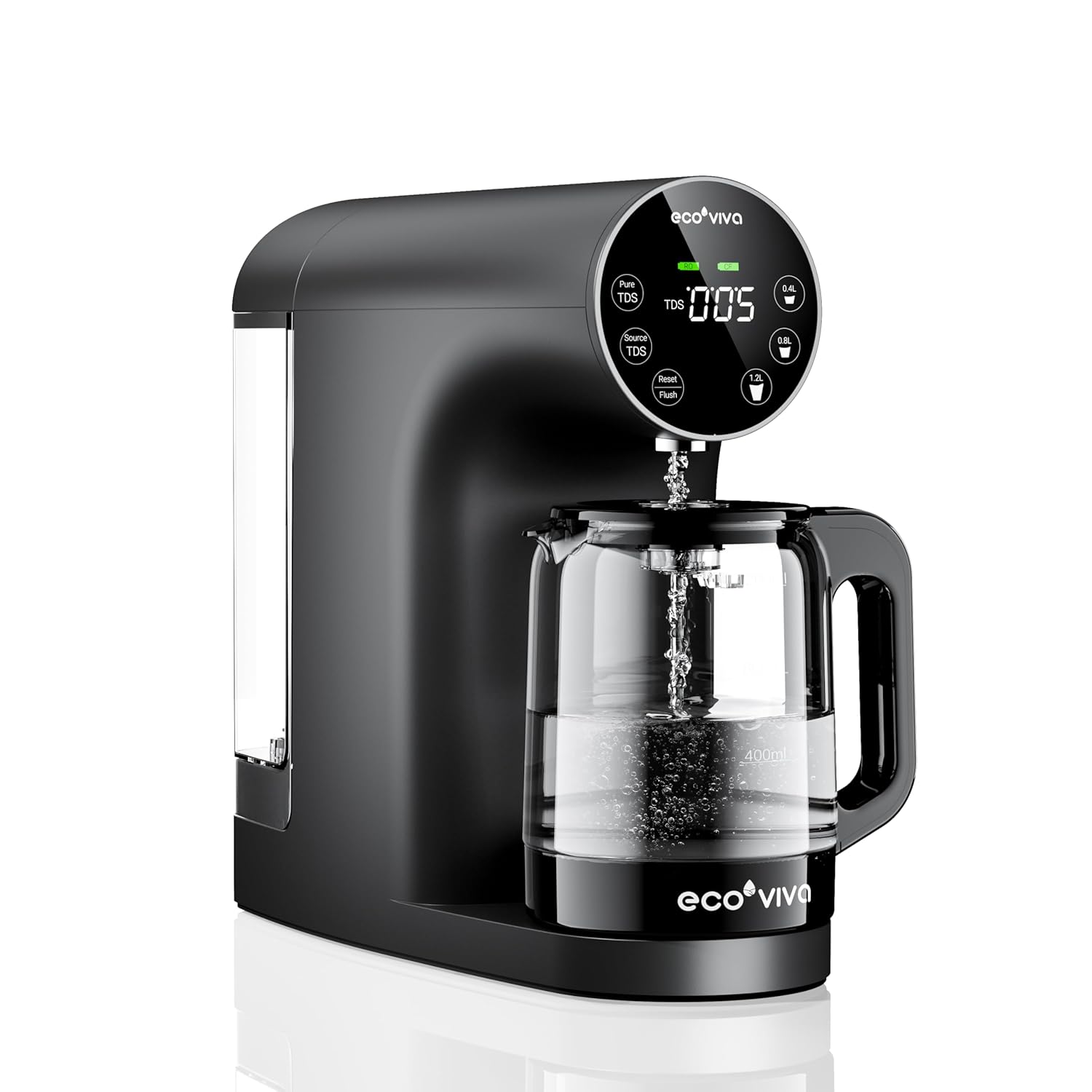 Ecoviva Countertop Reverse Osmosis Water Filter, 6 Stage RO Water Filtration System with Glass Carafe, TDS Displayr, 3:1 Pure to Drain, Portable No Installation Water Purifier Black