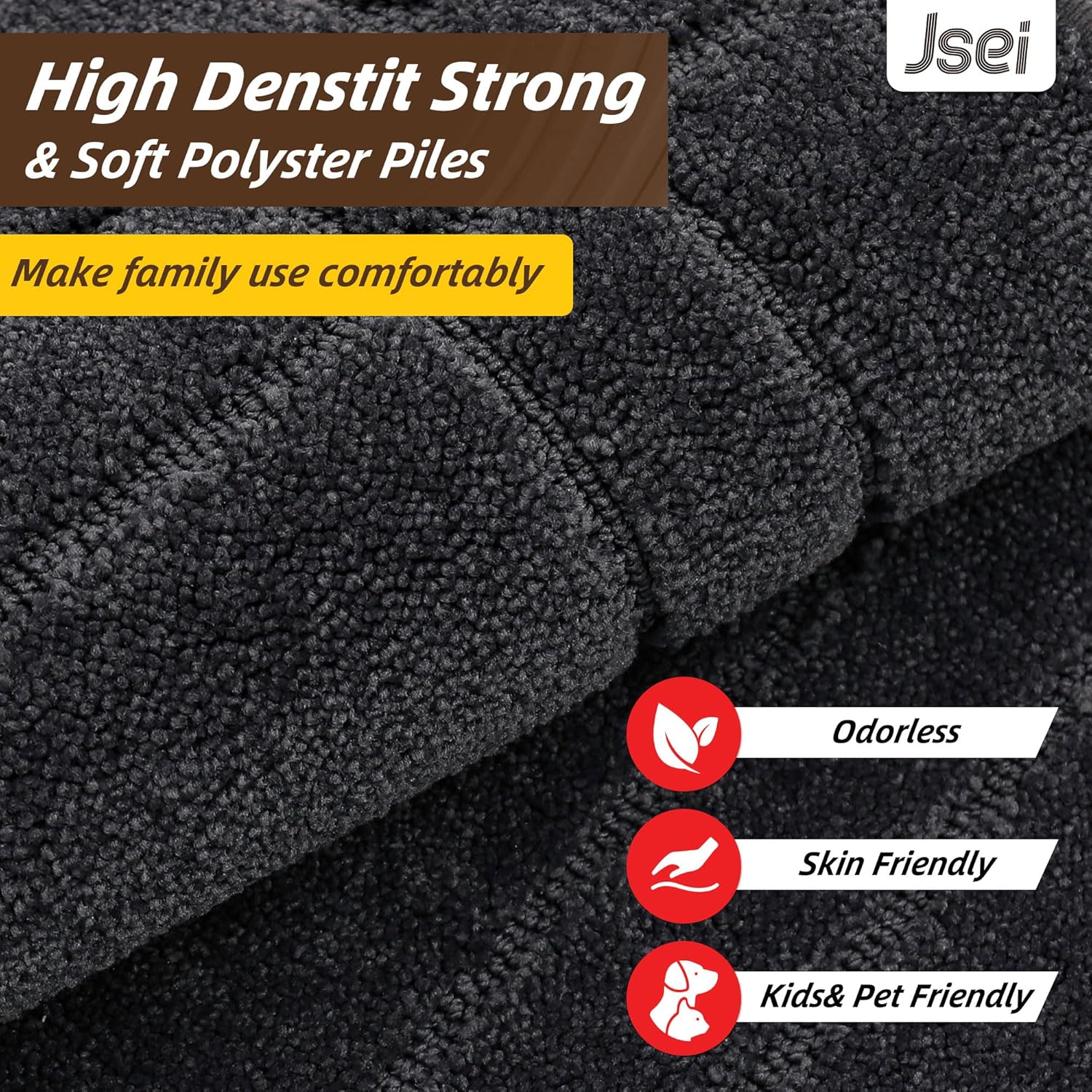 JSEI Entryway Rugs Doormat 20"x32", Non-Slip Dirt Trapper Door Mats Indoor, Washable Absorbent and Stain Resist Welcome Floor Mat for Front Door, Dog Door Mat, Muddy Wet Shoes & Paws, Dark Grey