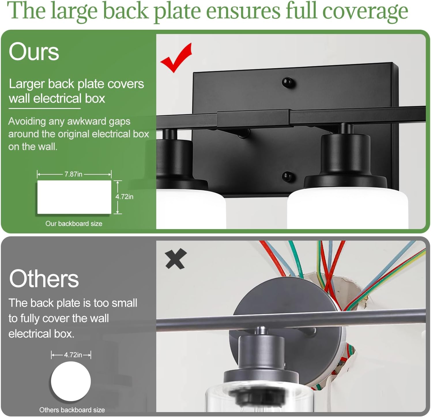 - [Sleek Matte Black Finish – Built to Last] Crafted with a durable metal frame and an upgraded matte black coating, this bathroom light fixture resists scratches, tarnish, and fingerprints. Designed to stay looking new, it adds a modern and elegant touch to any space.