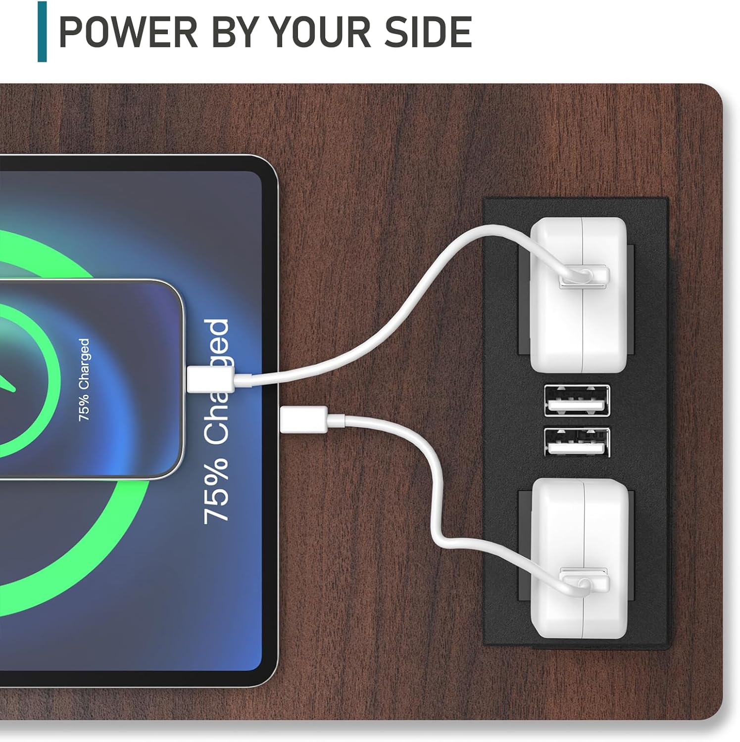 - [Integrated Charging Station]: This end table features an integrated charging station equipped with two standard power outlets and two USB ports. This setup enables you to charge up to four devices at the same time, ensuring your smartphones, tablets, smartwatches, and other electronics are always close at hand and powered up.