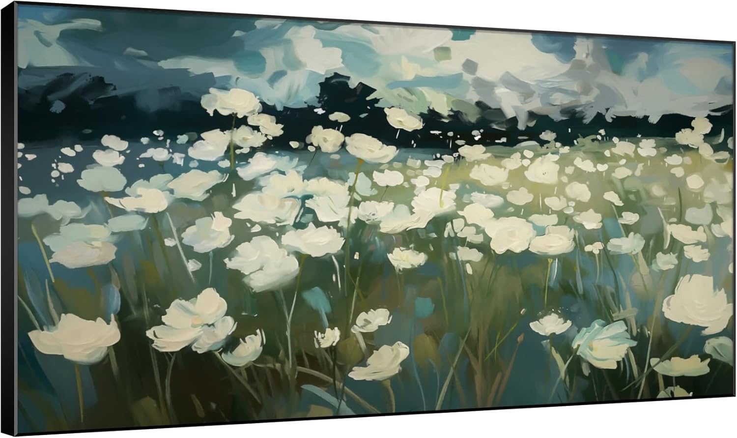 SIGNWIN 30"x60" Extra Large Framed Wall Art White Wildflower Field in Impressionist Style, Soft Floral Landscape for Home Living Room Bedroom Decor (Frame Assembly Required)