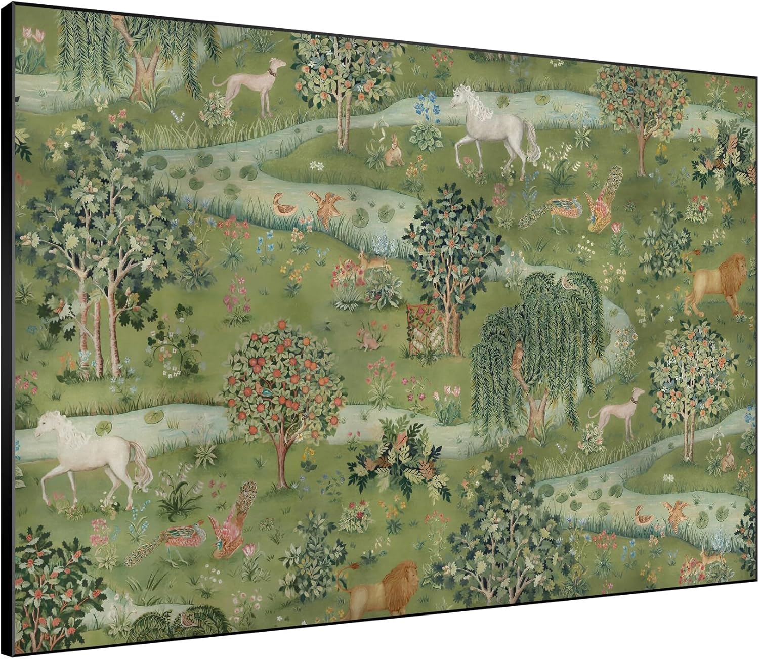 SIGNWIN 60"x72" Extra Large Framed Wall Art Medieval Fantasy Forest with Woodland Animals, Storybook-Inspired Scene for Home Living Room Bedroom Decor (Frame Assembly Required)