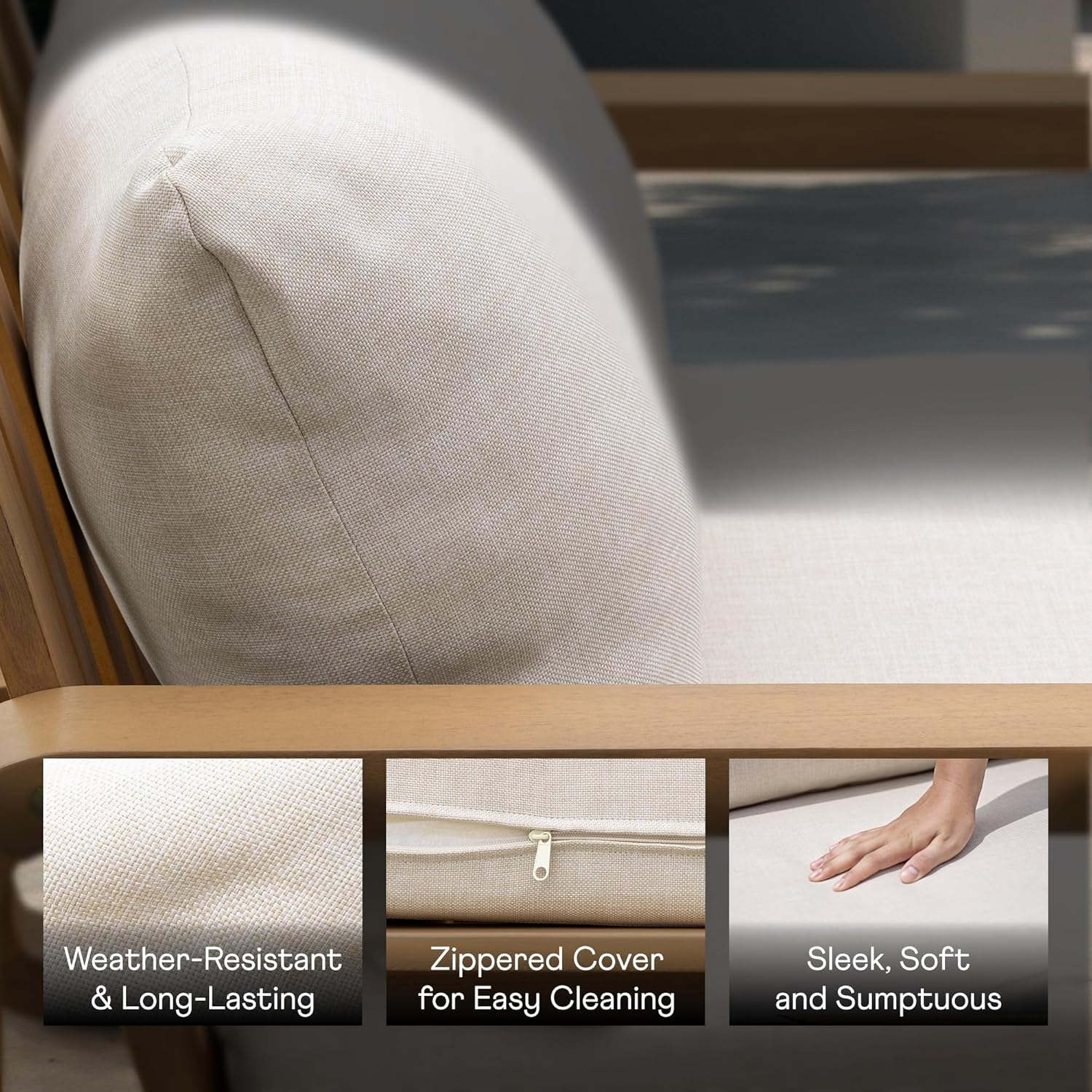 - STYLISH & FUNCTIONAL PATIO FURNITURE: The natural wood grain paired with minimalist lines delivers a clean, modern aesthetic, turning any outdoor corner into a cozy escape