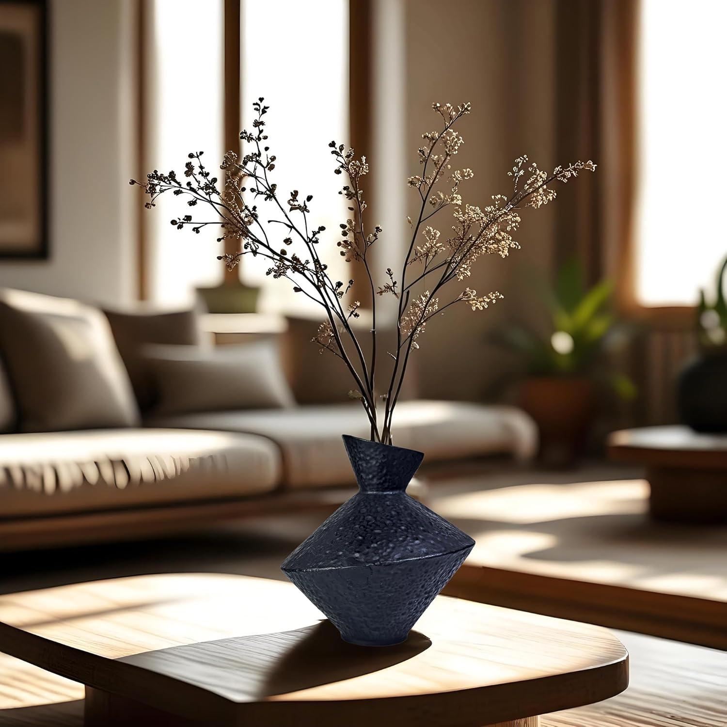 Cast Iron Decorative Vase, Dried Flower Rustic Vases, Wabi Sabi Vase for Modern Home Decor, Living Room, Shelf Decor, Enterway, Wedding, Office, Table, Bedroom, Kitchen, 8.86" H (Black)