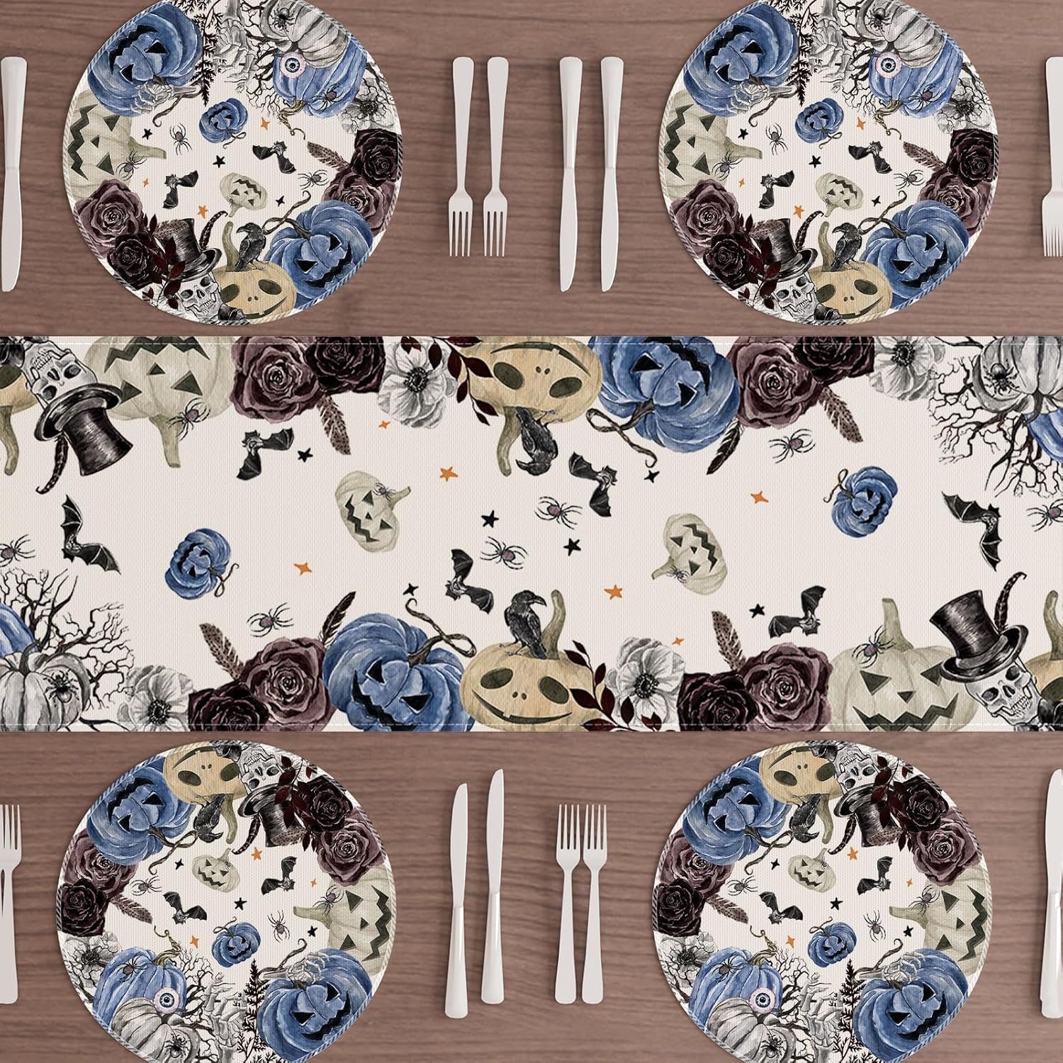 XCHI Spooky Blue Pumpkin Halloween Round Placemats Set of 4 Table Mats for Party Home Kitchen Dining Table Decorations 14x14 Inch