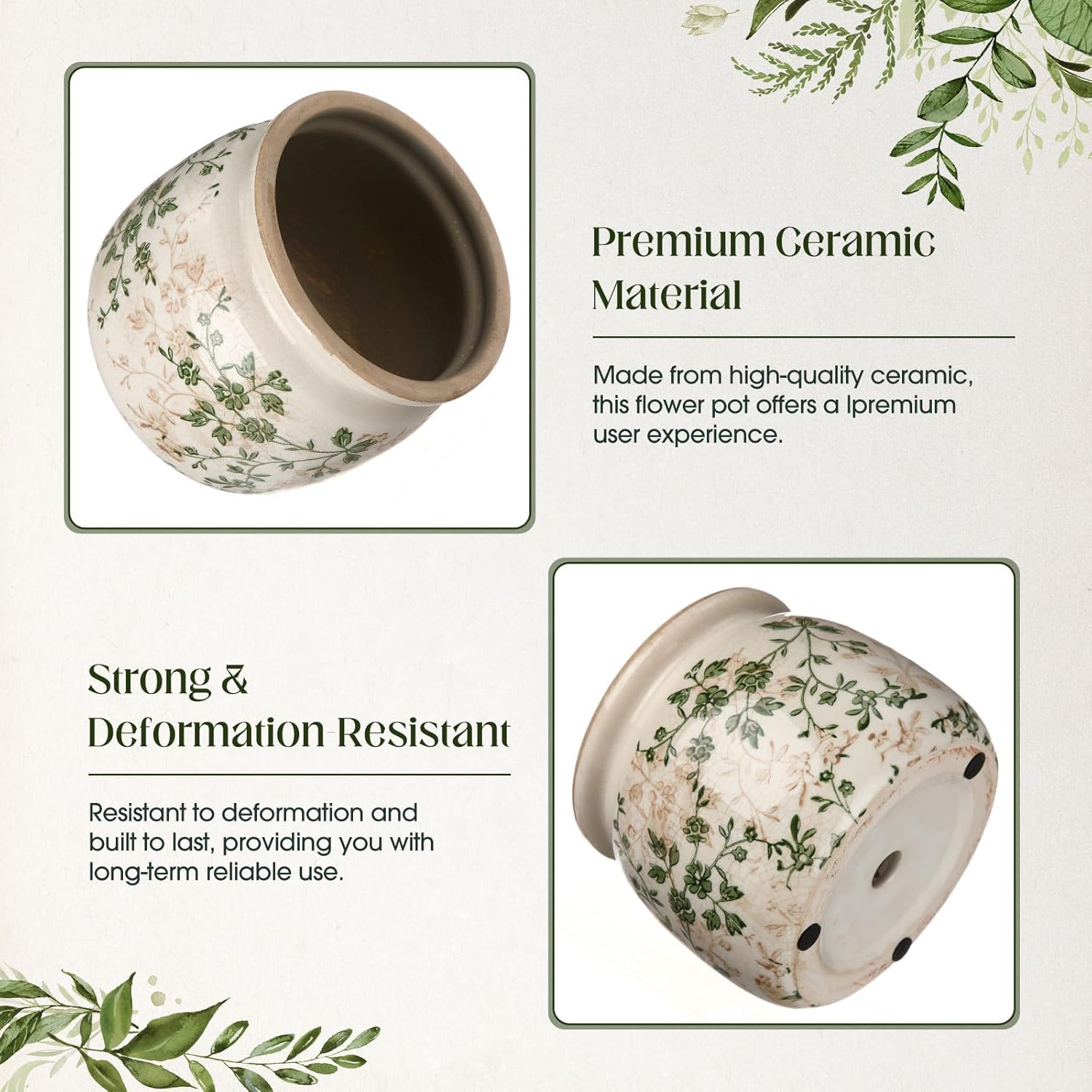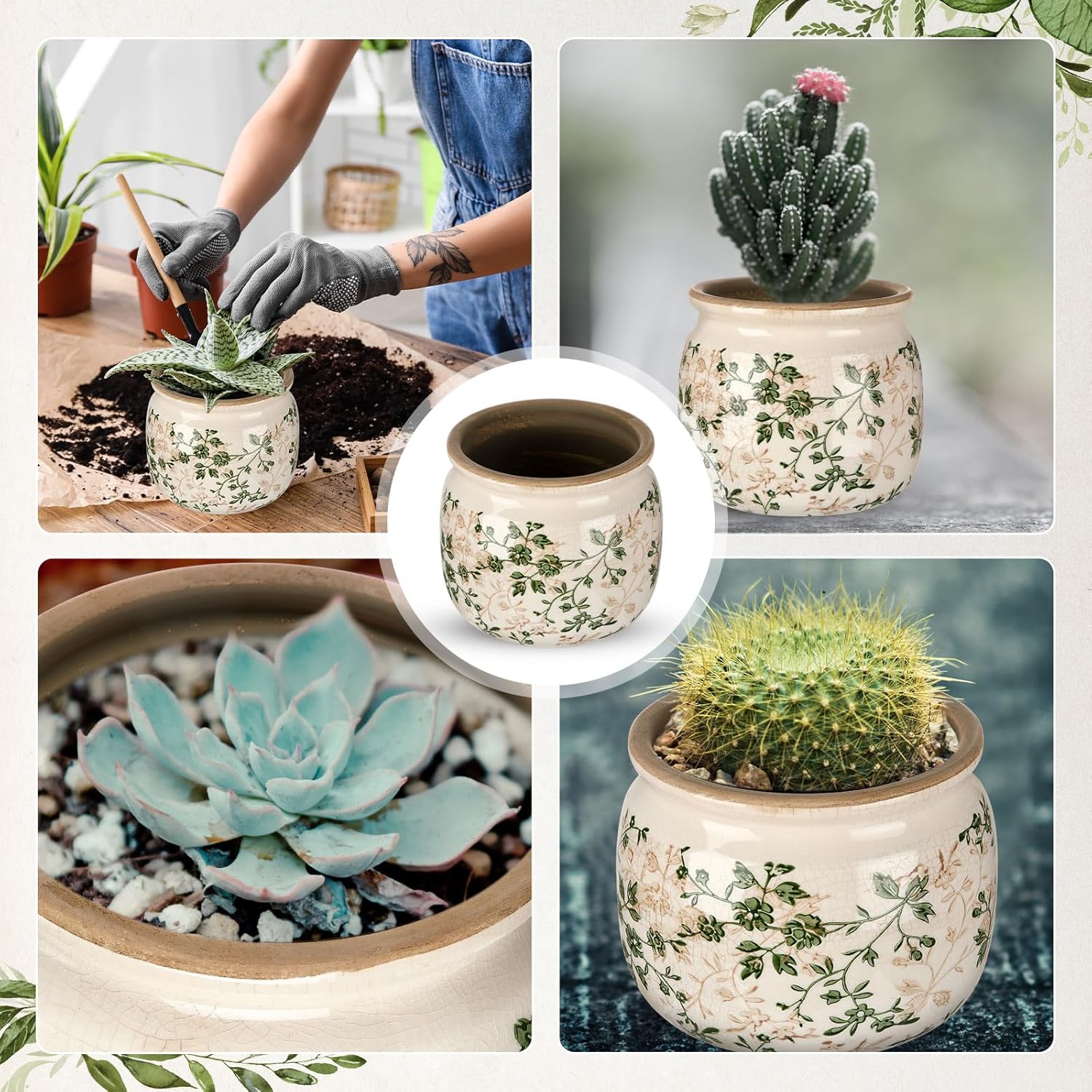 - Planters for Indoor Plants: this vintage pastoral floral plant pot measures 5.9 x 5.1 inches / 15 x 13 cm, giving you adequate space to house your indoor plants, suitable for shelves, coffee tables, or window sills; Its beige and green vintage color ties together interior decor, making the planter a nice centerpiece and embellishing your space with a taste of antiquity