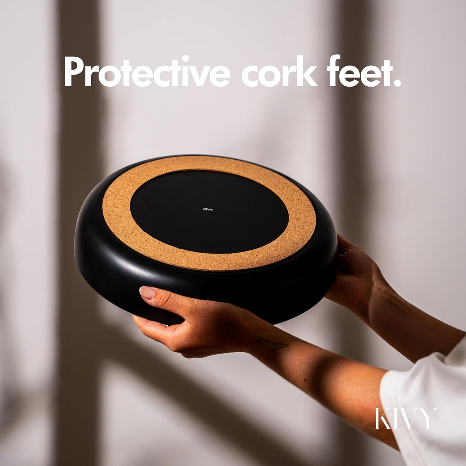 - PREMIUM MATERIALS - Made from 100% solid concrete, this concrete fruit bowl boasts a smooth surface & integrated anti-slip cork foot. Its robust build and modern design make it a standout piece in your home decor.